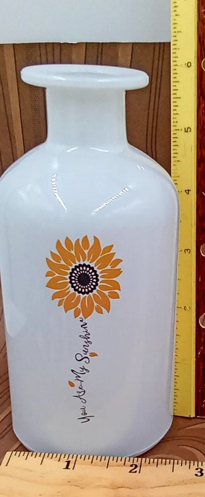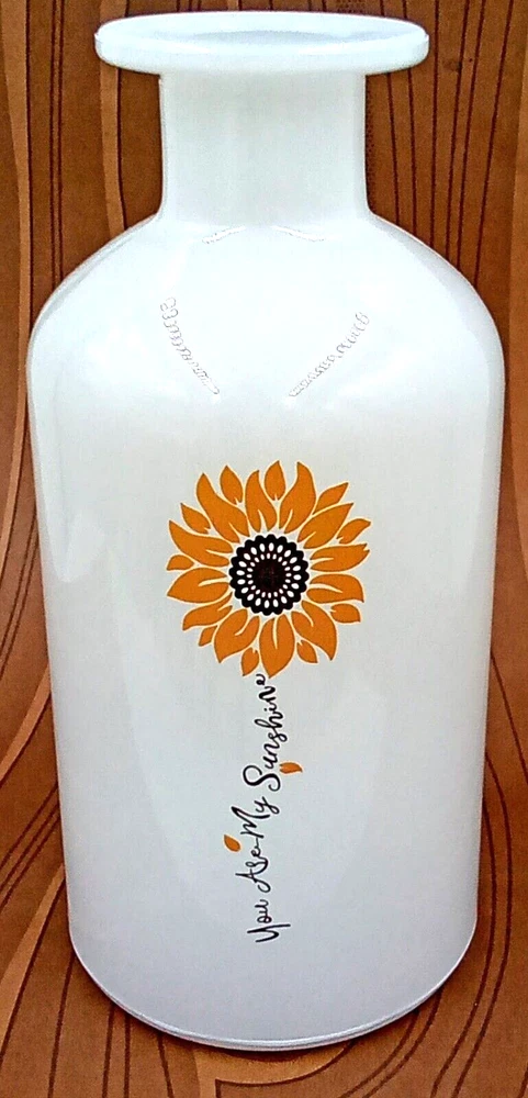 You are My Sunshine Sunflower Bottle Vase White Glass Floral Black Yellow Gold