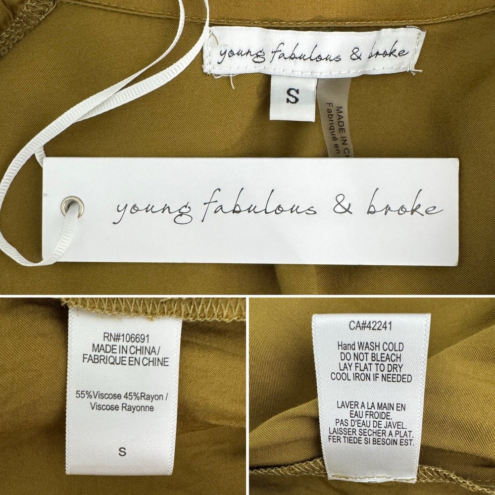 Rad Young Fabulous & Broke Truman Jumpsuit! Slinky soft satin. Waist tie. Super hot Measures flat approximately Chest 19" Waist 13 unstretched Hip 18 Rise 10.5 Inseam 26 Length 48 •Size: S •Condition: Excellent preowned – unworn but laundered, includes tag •Color: "Fern" - olive/khaki/military green Bundle for combined shipping! Pictures are part of the description. Color may vary by screen. Sizes vary between designers. ALL preowned items can be expected to show normal signs of wear. Smoke free, DOG FRIENDLY home. Tags: streetwear street style one piece onepiece mob wife sopranos office siren office business work meeting boss secretary designer influencer nightlife fall autumn travel trip