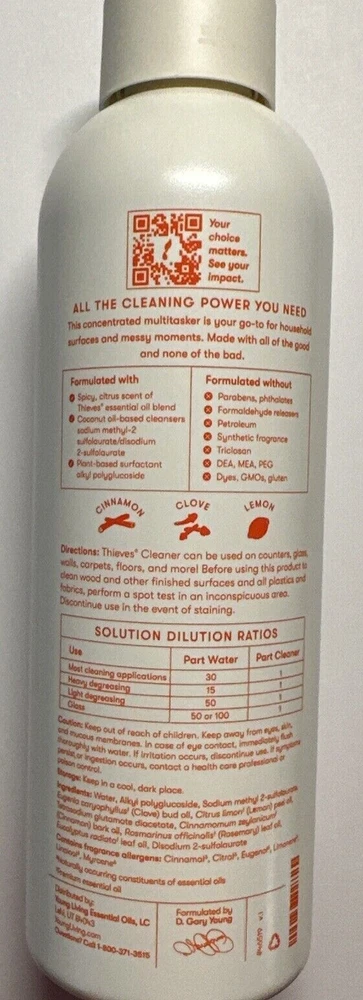 Concentrated Thieves Household Cleaner provides peace of mind by using only plant-based and naturally derived ingredients to effectively clean your home without using synthetic shortcuts or potentially harsh ingredients. Ultra-concentrated and non-abrasive, Thieves Household Cleaner is perfect for just about any surface. It is infused with Young Living's signature Thieves premium essential oil blend that will fill your home with a rich, spicy aroma.