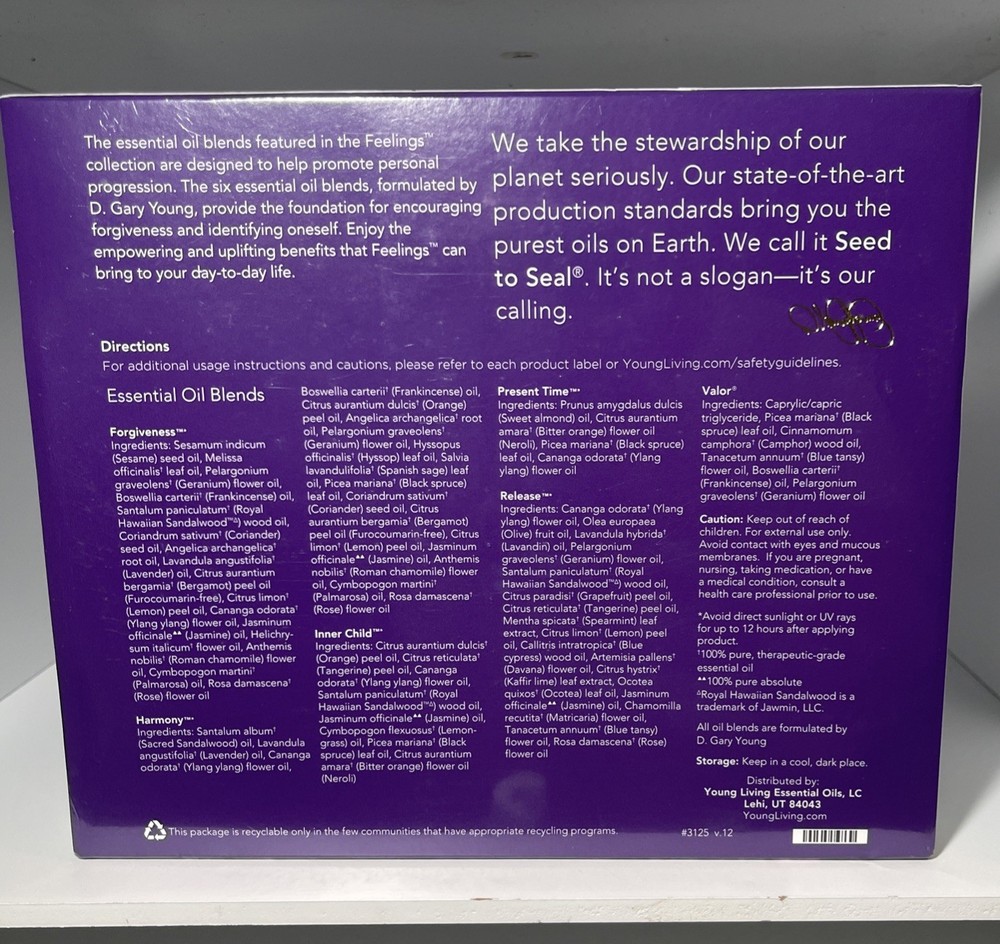 The Young Living Feelings Essential Oils Set offers 6 popular oil blends that are perfect for enhancing your mood and creating a relaxing atmosphere. This set includes essential oils with various scents, such as Forgiveness, Harmony, Inner Chil, among others. Each oil blend is designed to be used with a diffuser or as a deodorizer and odor eliminator, making it versatile for different uses in your home. With this set, you can enjoy the benefits of aromatherapy and create a peaceful ambiance wherever you go.