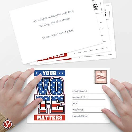 Your Vote Matters – Blank Patriotic Voting Post Cards for USA Election Campaign | Mailable, No Envelopes Needed | Flip Side Is Blank| Size 4 x 6 Inches | Bulk Set of 100 Cards Per Pack PERFECT FOR VOTER CAMPAIGNS - Send this out to friends, family and colleagues and encourage them to vote or support your favorite candidate during election campaigns. Can be used in student elections, local and national campaigns and many more! HIGH QUALITY - Has an attractive blue and red text design printed on a 4 x 6-inch white smooth 80lb (216 gsm) heavy cardstock. It’s also archival safe which means it deteriorates slower than regular paper products. NO ENVELOPES NEEDED - This is a self-mailing card with a response box and a postage area. No envelopes or mailers needed. It’s also very thick and sturdy which ensures that it reaches the recipients in perfect condition. EASY TO WRITE ON - Paper is uncoated for easy and neat writing and printing. Ensures that there are no smudged inks or bleeds. Very convenient and easy to use! SPEND LESS, GET MORE - Election is nearing and this value pack of 100 cards maybe just what you need to get the word around for your chosen representative. SHIPPING - We offer FREE shipping on all orders! - We ship within 3 business days of payment, usually sooner - We use a selection of shipping services such as UPS, FedEx, USPS etc - We only ship to the lower 48 states, no APO/FPO addresses or PO Boxes allowed International buyers – please note: Import duties, taxes, and charges aren't included in the item price or postage cost. These charges are the buyer's responsibility. - Please check with your country's customs office to determine what these additional costs will be prior to bidding or buying. - We have confidence in our products, but if you are not fully satisfied please contact us within 30 days of purchase and you will get full refund. * Order Cancellation Policy ** You can return a product for up to 30 days from the date you purchased it. 1. The seller reserves the right to cancel the special case only due to eBay cancellation fee. 2. The decision of seller is the final. 3. The seller will respond to the cancellation request within 2 business days. Please wait for the result of cancellation. 4. In case the cancellation is not completed by some reasons, the buyer can follow the options below to get the refund. 4.1 The buyer can reject the item when it arrives. 4.2 The buyer can send the item back to the seller within 30 days If the buyer receives item (USA Shipment ONLY). The seller will provide the FREE return label to the buyer when the buyer opens " Return Item" case on eBay by using the reason as "Change my mind" ONLY. 5. When buyer has placed the order. The order will be processed and completed by automatic warehouse system within 5 minutes. In case that buyer sends the cancellation request after 5 minutes of placing the order, the request will be rejected. **Sending direct message to cancel the order is not allowed for every case.* Return Policy For the return case - If buyer would like to return the items for refund or replacement, please CONTACT SELLER to receive the free return label from seller. The refund or replacement will be processed with the tracking number of return label which is provided by seller only. The other ways of return which are not approved by seller will not be processed for the refund or replacement. CUSTOMER SERVICE - We try our best to make sure every customer is completely satisfied. - If there's a problem, feel free to message us! - We're happy to help.
