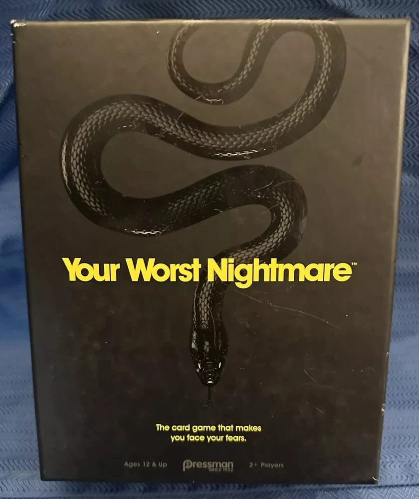 Get ready for a thrilling experience with the Your Worst Nightmare Card Game by Pressman. This 2+ player party game is perfect for ice-breaking and strategy-building. With a complete game set, including cards, dice, and score pad, you and your friends can enjoy hours of fun and excitement. The game is suitable for players aged 12 and above, and it's a great addition to any game collection. The Pressman brand ensures quality and durability, making it a reliable choice for game enthusiasts. So, gather your friends, grab some snacks, and get ready for a night of laughter and strategy-building with Your Worst Nightmare Card Game.