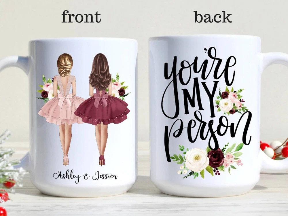 You're My Person Custom Best Friend Coffee Mug Best Friends Forever Bff Gifts Product Details.. This high quality 11oz. ceramic white mug has a premium hard coat that provides crisp and vibrant color reproduction sure to last for years. Perfect for all hot & cold beverages. The highest quality printing possible is used. It will never fade no matter how many times you wash it. Material: 100% Ceramic. Print both sides. Dishwasher and Microwave Safe. High Gloss + Premium White Finish. Printed in the U.S.A. Personalized & Custom. We support personalized and custom mug to add custom, when placing an order, you can add notes to the "order note" in shipping address section. Also you can contact us directly via message. Shipping Info. Ready to ship in 1 to 2 business days, All products are made-to-order and proudly printed in the United States. Shipped by USPS and DHL, You will receive your order in 5-7 days. Replace & Refund. All products are defective during shipping broken, chipped will be replaced free of charge. You are not satisfied with the product, we will refund 100% money to you. If any other issues arise, please do not hesitate to message, we would be more than happy to assist you.