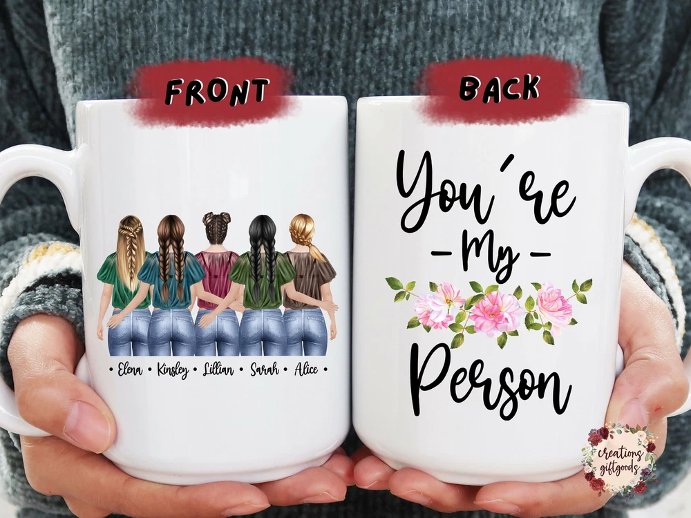 You're My Person Custom Best Friend Gift Mug Best Friends Forever Bff Gift Mug Product Details.. This high quality 11oz. ceramic white mug has a premium hard coat that provides crisp and vibrant color reproduction sure to last for years. Perfect for all hot & cold beverages. The highest quality printing possible is used. It will never fade no matter how many times you wash it. Material: 100% Ceramic. Print both sides. Dishwasher and Microwave Safe. High Gloss + Premium White Finish. Printed in the U.S.A. Personalized & Custom. We support personalized and custom mug to add custom, when placing an order, you can add notes to the "order note" in shipping address section. Also you can contact us directly via message. Shipping Info. Ready to ship in 1 to 2 business days, All products are made-to-order and proudly printed in the United States. Shipped by USPS and DHL, You will receive your order in 5-7 days. Replace & Refund. All products are defective during shipping broken, chipped will be replaced free of charge. You are not satisfied with the product, we will refund 100% money to you. If any other issues arise, please do not hesitate to message, we would be more than happy to assist you.