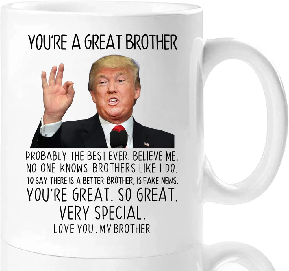 Store New Arrivals Add to Favorite View Feedback Contact You're a Great Brother Coffee Mug Funny Brother Mug Ceramic Cup White 11Oz Trump Description Item model number QDMKB0SJX108 Style Brother Number of Items 1 Pattern Letter Print Country of Origin China Theme Funny, Brother Cartoon Character Brother Unit Count 1.0 Count Material Ceramic Capacity 11 ounces Product Dimensions 3.1"W x 3.8"H Package Type Individual Carton Packaging Age Range (Description) Adult Finish Type smooth Specific Uses For Product Cold Drinks, Hot Drinks Reusability Reusable League ncaa Included Components Handle Item Weight 12 ounces Material Feature ['Lead-free', 'Cadmium-free'] Special Feature Refrigerator Safe, Microwave Safe Occasion Christmas/Father’s Day/Birthday Item Weight 0.75 Pounds Color Great Brother Shape Round Recommended Uses For Product Home Material Type Free Cadmium Free Product Care Instructions Microwave Safe, Dishwasher Safe Size 1 Count (Pack of 1) 【Best Great Brother Mug Gift 】The perfect brother mug gifts from family friends. Suitable for birthday, Father's Day, Christmas, celebration, graduation as a gift for your brother. Tell him how much you care and love him. He is the best brother in the world. 【Funny Gift for Brother from Sister/Brother】Each mug has the design printed on both sides of the funny patten with "You're A Great Brother". Uses a funny and humorous creative design. Opening the package will trigger the crowd to laugh, definitely a gift that will impress brothers. 【Durable and Practical Brother Mug】This funny brothers coffee mug is made of lead-free and cadmium-free high quality ceramic, easy to clean. Suitable for hot and cold beverages. Suitable for microwave oven. 【Brother Gift for Multiple Occasions】The brother coffee mug has a comfortable grip with a C-shaped handle for both left and right hands. 11 ounce capacity for daily use. Suitable for any indoor place. 【Satisfied Customer Service】Each mug is packaged in an individual gift carton and wrapped in polystyrene foam to ensure the product reaches the recipient in perfect condition; If you have any concerns, we'll be there to assist you promptly. Product Description Standard 11oz Capacity. Individual Gift Box. Double Sided Printing. For Hot and Cold Drinks. Funny Brother Gift from Sister. Whether it's a birthday, graduation, Father's Day, Christmas, family gathering or a party, our mugs fit perfectly. Bring surprises and smiles to brother/big brother/little brother. Sharing Happiness with Brothers. This Brother Mug is a gift that will make you laugh just by looking at it. Give it to your beloved brother, let him know how great and excellent he is, and gain a happy mood at the same time. ABOUT US We offer the best prices around on high quality products. Our E-store includes media such as books, movies, music and games while offering electronics, toys, sporting apparel, clothing, tools, general home, garden items and more. SHIPPING We are always working hard to ensure your package arrives as soon as possible. Please understand that some factors like weather, high postal traffic, and the performance of shipping companies are outside of our control. We offer free shipping to the lower 48 states and ship within 2 business days of payment, usually sooner. We do not accept P.O. Boxes. Please provide a physical address. RETURNS We offer a 30-Day Return Policy on items which you are not completely satisfied with. You have the option for a full-refund or an exchange of the item. No returns are available on items shipped outside of the USA. PAYMENT We accept PayPal. CONTACT US This page content is yet to come Please ad us to your favorite seller and visit again later Thank You CUSTOMER SATISFACTION We try our very best to make sure every customer is completely satisfied. If there's a problem, message us! We're happy to help.