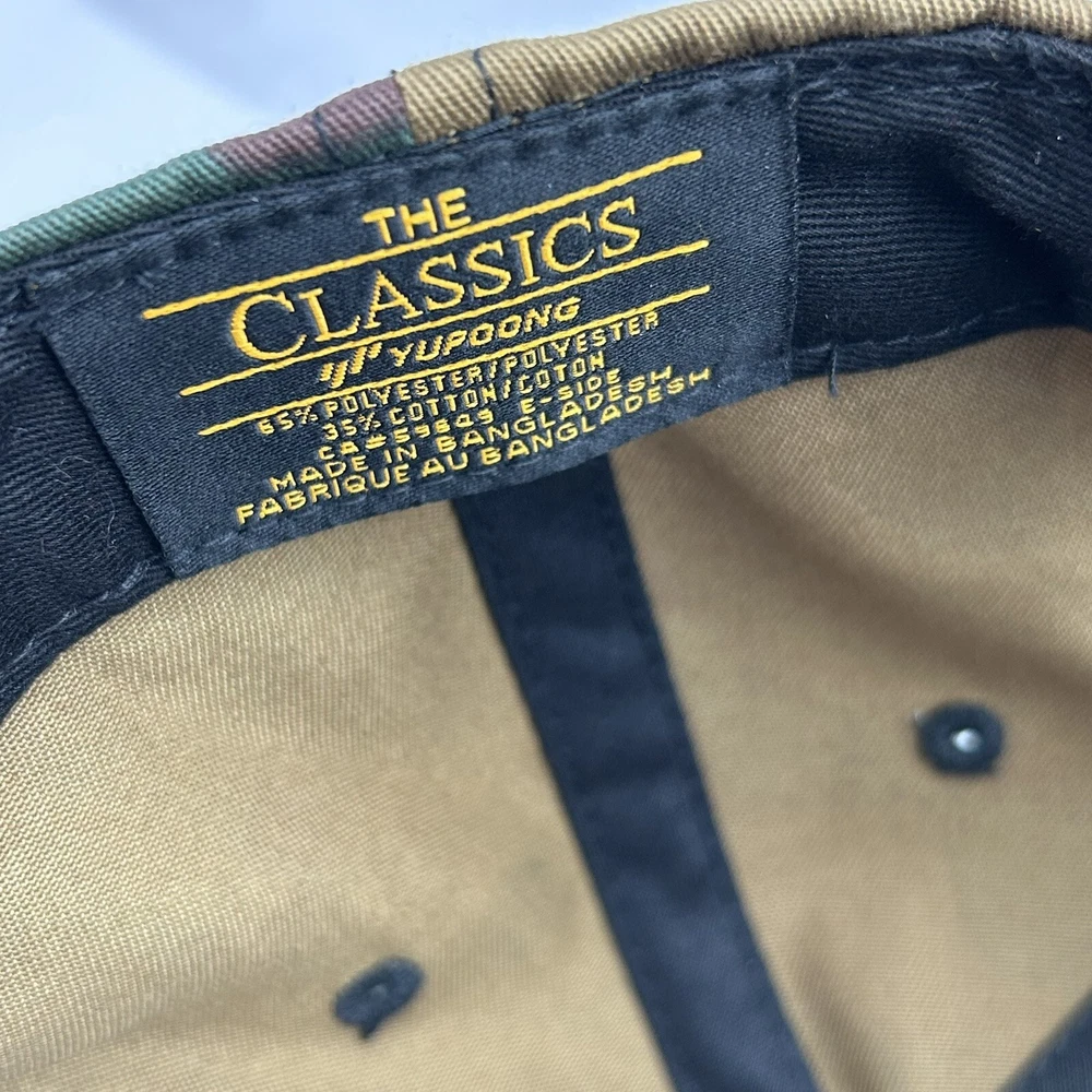 Stay stylish and blend in with nature with this Youth Camo Cap by YP Yupoong Classics. The classic hunters 6 panel cap design features a black bear logo on a green and brown camouflage pattern. Made from a blend of polyester and cotton, this adjustable snapback cap fits 17.5" - 20" heads, typically 2-7 years old, and is ideal for all seasons. Complete your outfit with this hunters style cap that showcases a unique blend of comfort and style. Made in Bangladesh with quality cotton fabric, this cap is a must-have accessory for any young trendsetter.