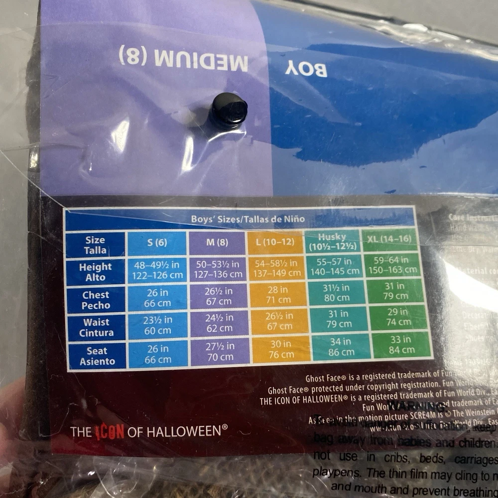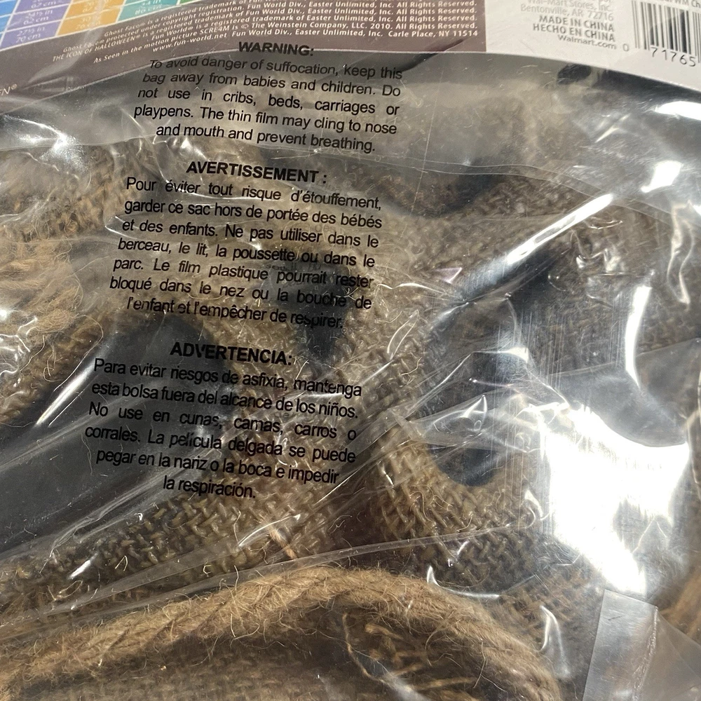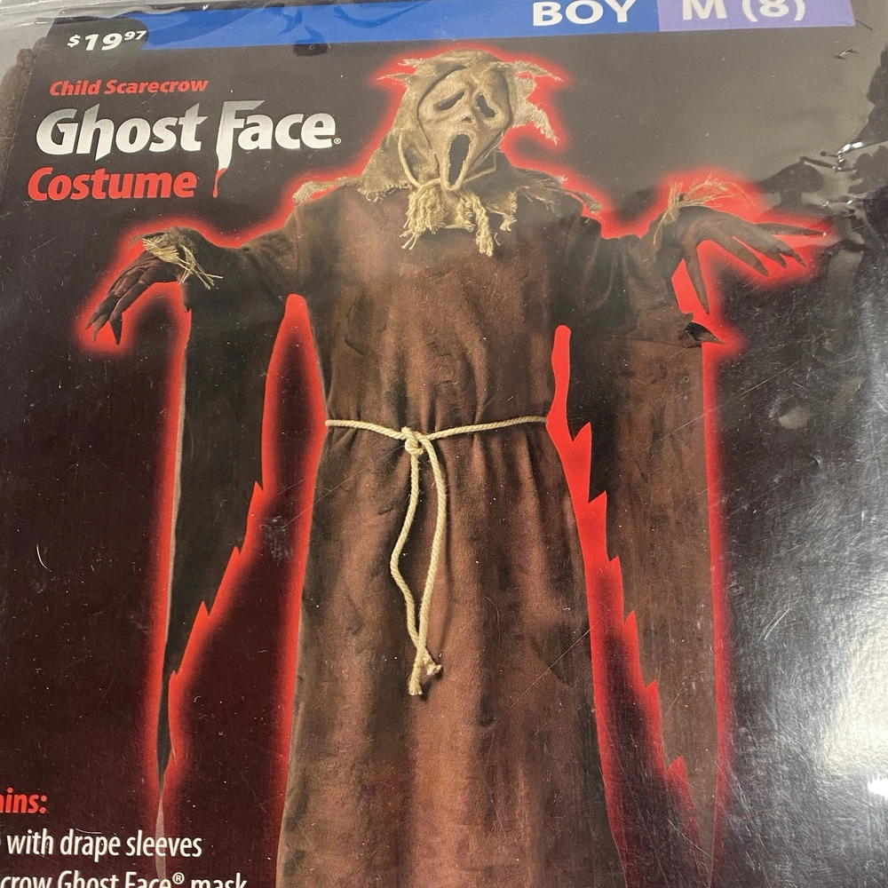 The Youth M (8) Ghostface Scarecrow Burlap Mask is a Halloween costume accessory designed for young individuals. Made from burlap material in a brown color, this medium-sized mask is perfect for adding a spooky touch to a Halloween outfit. The fun world brand ensures quality and authenticity, making it a great choice for Halloween celebrations or themed parties. Whether worn with a costume or for decoration, this Ghostface Scarecrow Burlap Mask is sure to make a statement on Halloween.
