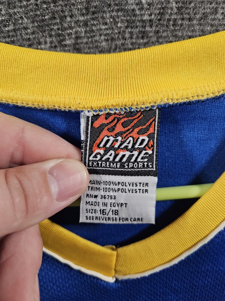 Product: Jersey League: National Basketball Association (NBA) Country/Region of Manufacture: Egypt Officially Licensed: No Size: 16 Brand: Mad Game Sport: Basketball Team: Golden State Warriors Color: Multi-Color Gender: Unisex Children
