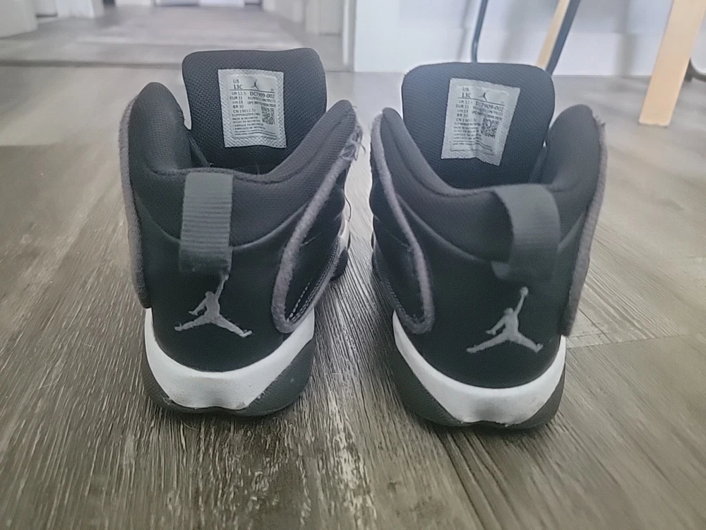 The product is a pair of Youth Jordan sneakers in a sleek black color. It is designed for boys with a US shoe size of 13, AU shoe size of 13, and UK shoe size of 12.5. This athletic-style sneaker is part of the Air Jordan product line, known for their quality and style. Perfect for active kids who want a comfortable and trendy pair of shoes, these Jordans in size 13 are sure to be a hit with any young sneaker enthusiast.