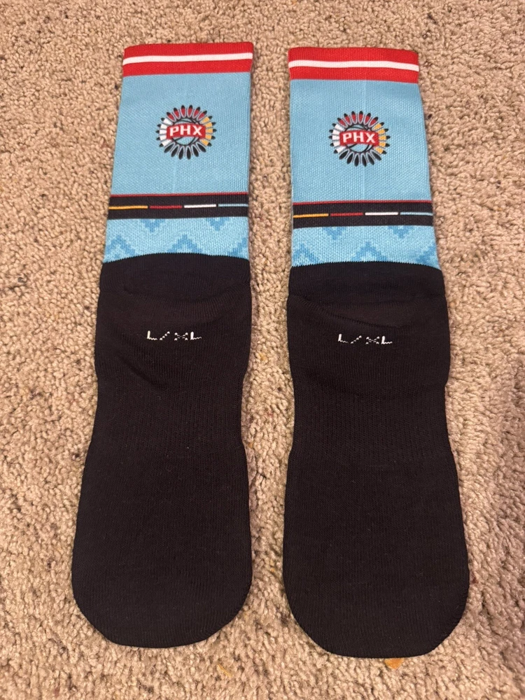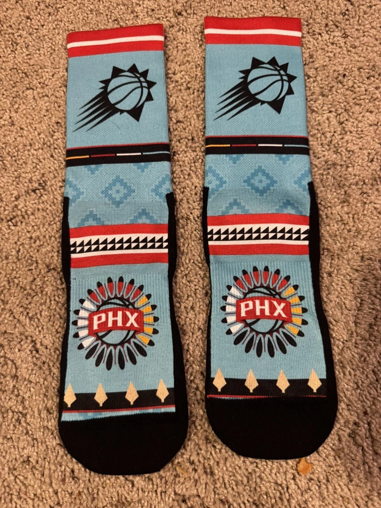 Show off your love for the Phoenix Suns with these Youth Phoenix Suns Rock Em Socks. These socks are the perfect addition to any basketball fan's wardrobe. Made with high-quality materials, these socks are sure to keep your feet comfortable and stylish. Represent your favorite team in style with these officially licensed socks. Perfect for game days or everyday wear, these socks are a must-have for any Phoenix Suns fan. Get yours today and show your support for the team!