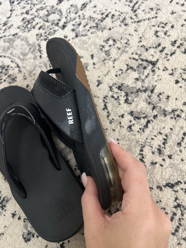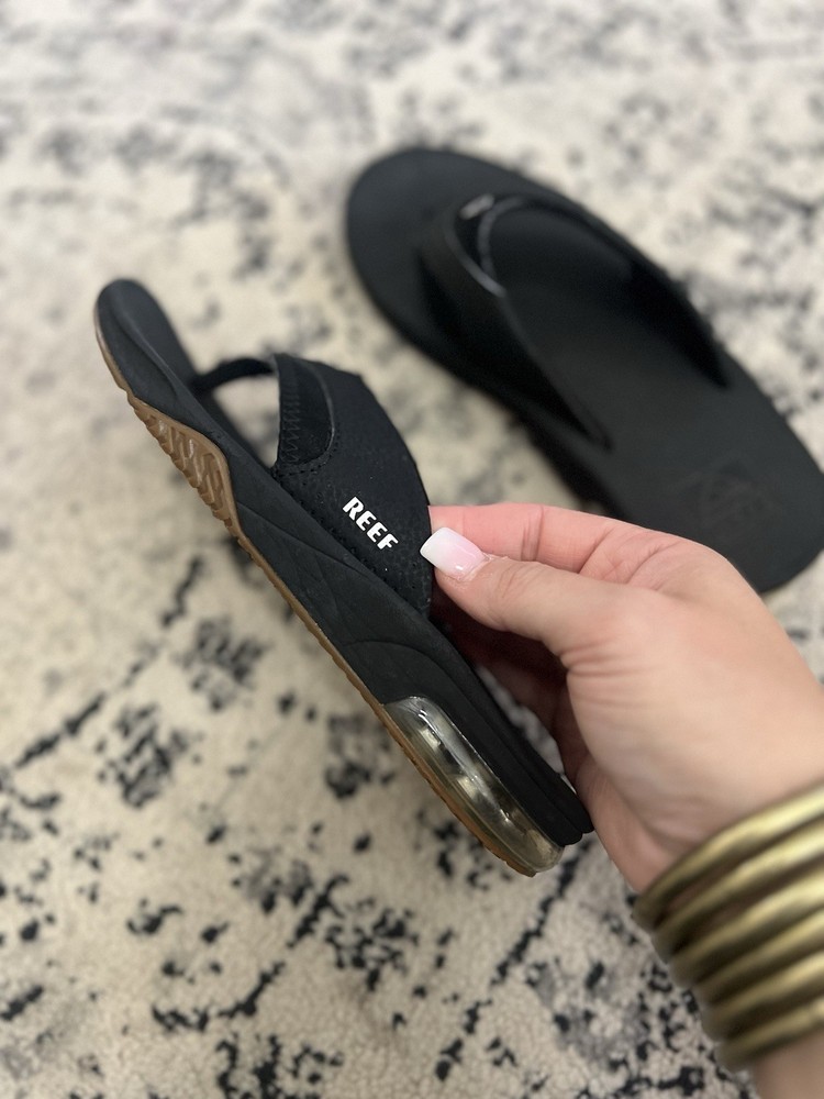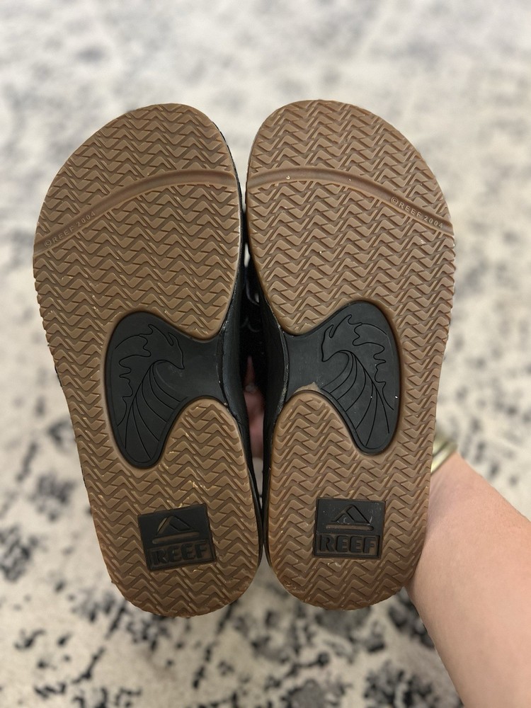 The Youth Reef Black Flip Flop Sandals in size 4/5 are a versatile and stylish option for young individuals. With a comfortable flip flop style and a classic black color, these sandals are perfect for both boys and girls. The Reef brand is known for its quality and durability, making these sandals a great choice for everyday wear. Perfect for the beach, pool, or just casual outings, these sandals offer both style and functionality for kids on the go.