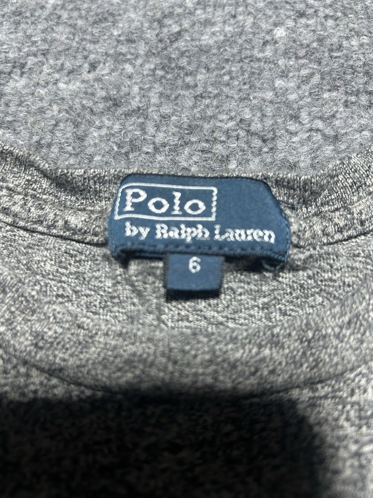 The product is a Youth Size 6 Polo Ralph Lauren Long Sleeve Shirt in Grey Aop, designed specifically for boys. This shirt features a classic Polo Ralph Lauren design with a distinctive Aop model, perfect for young boys looking to add a stylish and high-quality piece to their wardrobe. The long sleeves provide warmth and coverage, making it a versatile option for everyday wear or more formal occasions.