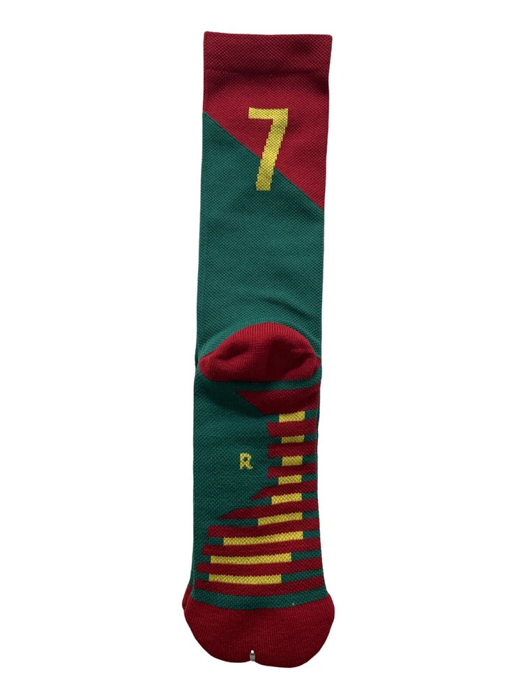 Ships From USA 🇺🇸 Youth Soccer Socks Size M/L EUR 30-38 EU/FR UK US 30 12 13 38 5 7 Show your support for your favorite soccer player, Ronaldo, with these inspired fan version athletic crew socks. The red and green colors represent the Portuguese flag and are perfect for any soccer enthusiast. Made in China, these unisex socks are available in Youth size M/L and are suitable for both boys and girls. Whether you're playing soccer or just showing off your love for the sport, these socks are a must-have. They are perfect for casual wear or for wearing during practice sessions. Get your hands on these Youth Soccer Socks and show your support for Ronaldo! Returns not accepted! I will be happy to answer all your questions before purchasing my item ! Thanks for looking!