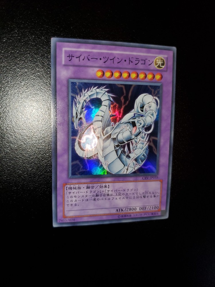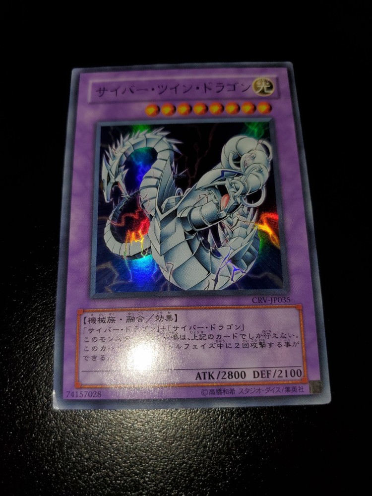 Yugioh 2005 Cyber Twin Dragon CRV-JP035 Japanese OCG Light Play Will ship safely & securely through eBay envelope tracking. Penny sleeve inside toploader wrapped in an antiweather and antislip team bag. As a long time seller on eBay, I want every order placed with me to arrive timely and safely. You are entrusting me with your hard earned money and I will not only meet, but surpass your trusted expectations. Feel free to message me for further pictures or questions.