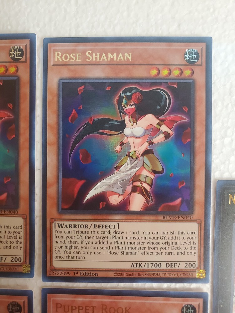 Yu-Gi-Oh Battles Of Legend -Monstrous Revenge- 5 Card Lot. 2x Rose Shaman BLMR-EN040 Puppet Pawn BLMR-EN015 Puppet Rook BLMR-EN016 Number 72: Shogi Rook BLMR-EN080 Cards are in excellent condition.
