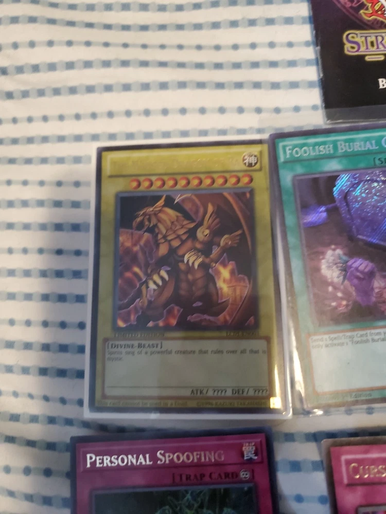 This Yu-Gi-Oh! card lot includes 13 pieces with a guide. The set features the winged dragon of ra foolish burial goods shiranui su saga cyber pharos personal spoofing curse of dark ess dimensional barrier limiter removal destiny hero dreadmaster harpie lady sisters rage with eyes of blue cyber twin dragons in English language and includes effect, normal, and spell cards. The cards are from the Yugi set and are suitable for players aged 13 and above. The cards have a holo finish and are perfect for collectors and players alike. Get your hands on this amazing card lot today!