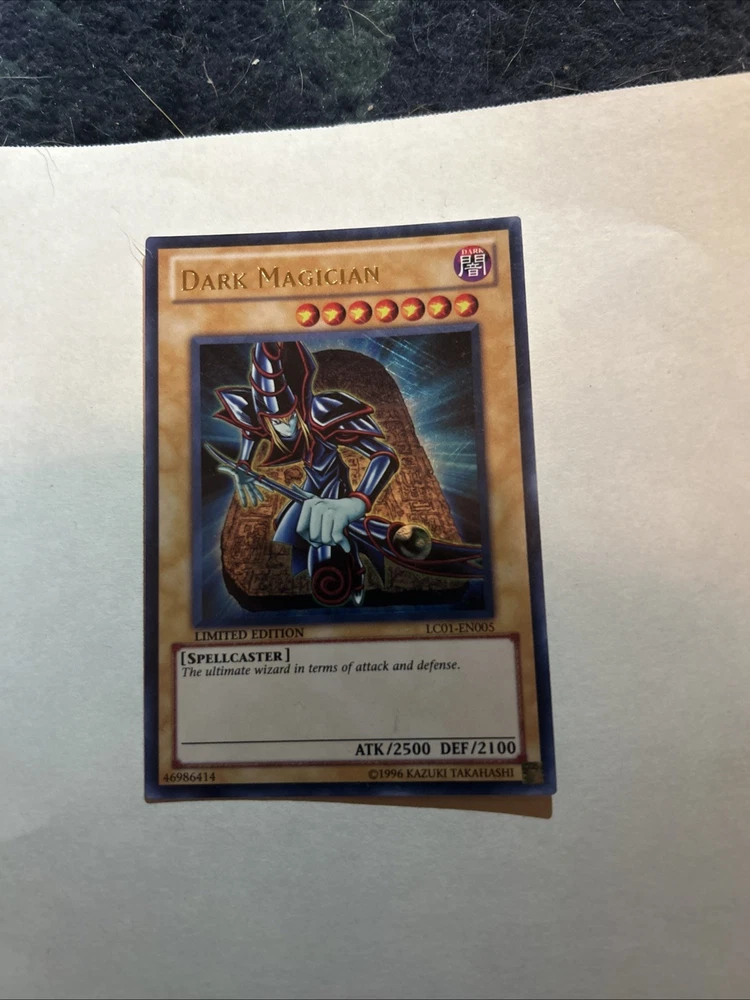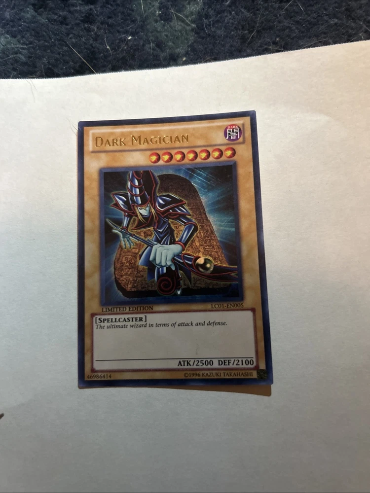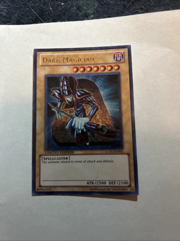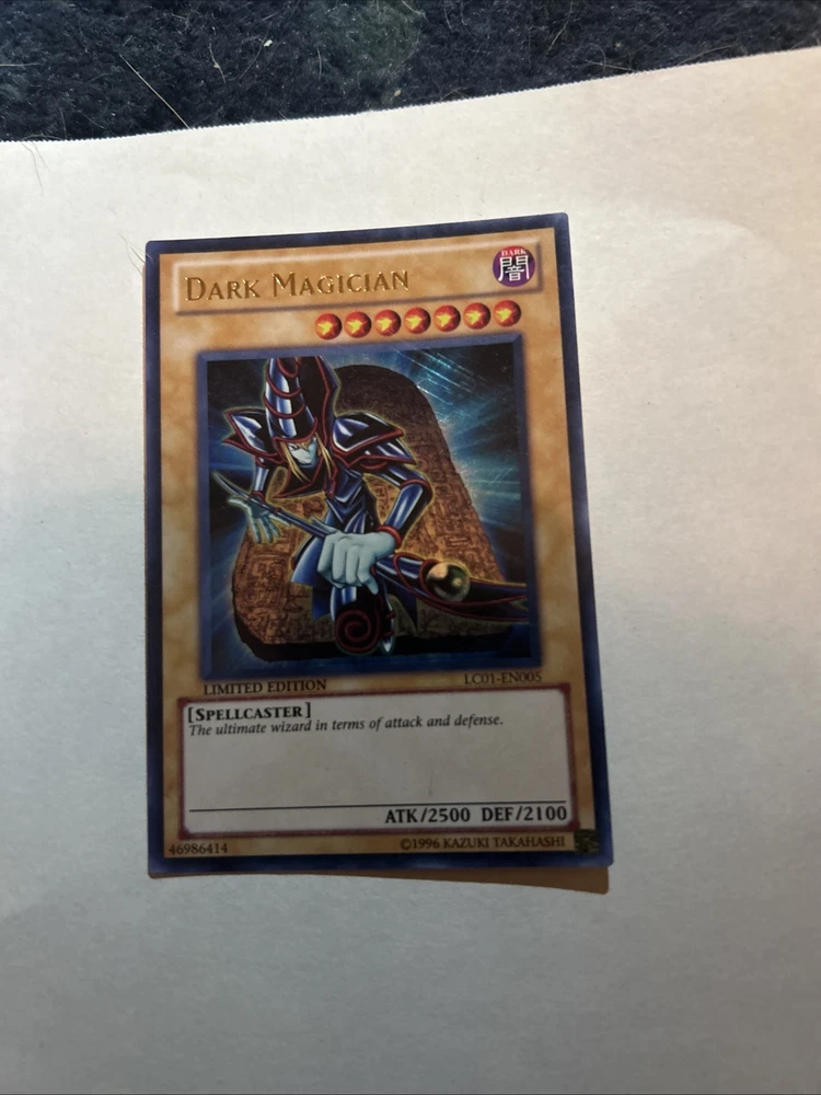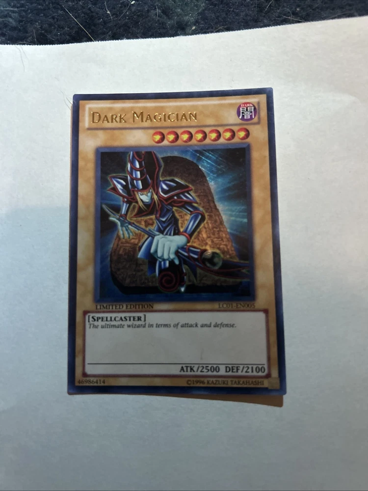 The Yu-Gi-Oh! Dark Magician Limited Edition LC01-EN005 Ultra Rare Trading Card is a highly sought-after collectible card from the Yu-Gi-Oh! TCG. This English-language card features the iconic Dark Magician character with powerful attack and defense stats of 2500 and 2100 respectively. Manufactured by Konami in the United States, this holo-finished card is a must-have for any Yu-Gi-Oh! fan looking to enhance their collection with a rare and valuable addition.