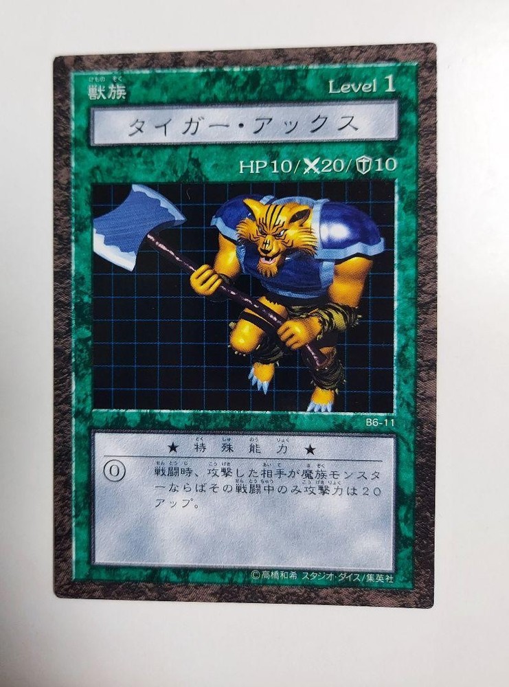 This Yu-Gi-Oh! Dungeon Dice Monsters Tiger Axe is a nostalgic gem for collectors who appreciate vintage charm. The figure and card show natural wear from years of storage, including paint chips and scratches, but that adds to its authentic retro appeal. Perfect for fans who don’t mind a little character from age—just check the photos to see its condition. A great find for those who love classic Yu-Gi-Oh! memorabilia!
