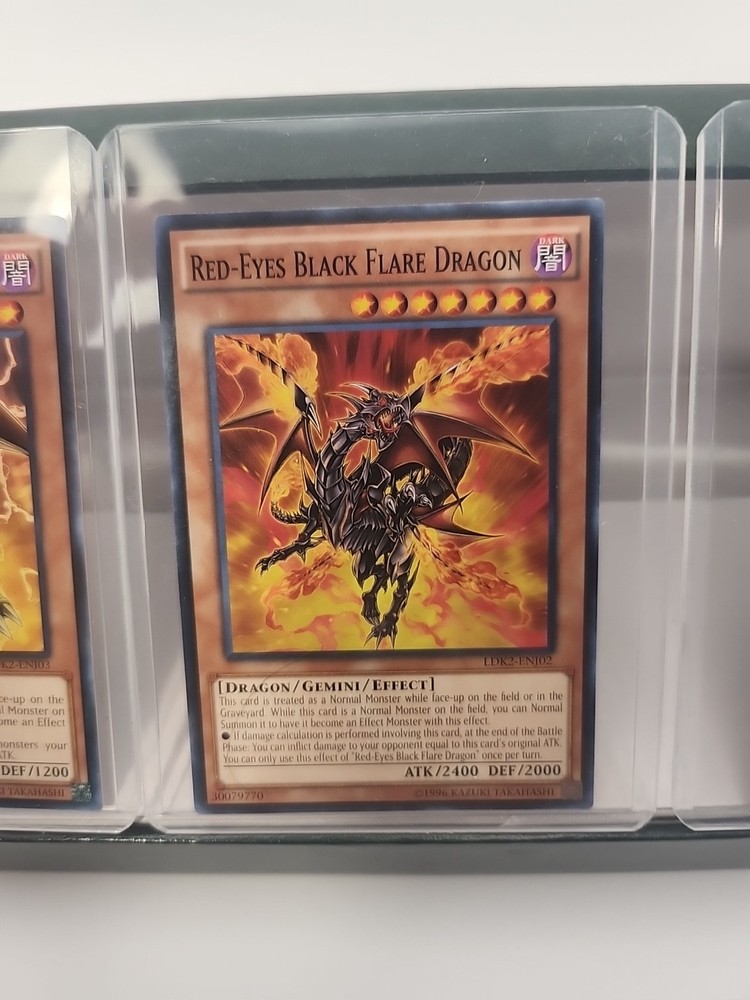 The Yugioh Red Eyes Dragon Lot 2 consists of 3 standard-sized Yu-Gi-Oh! TCG cards manufactured by Dragon. The cards are in English and of normal type. This lot is ideal for collectors or players looking to enhance their deck with powerful Red Eyes Dragon cards.