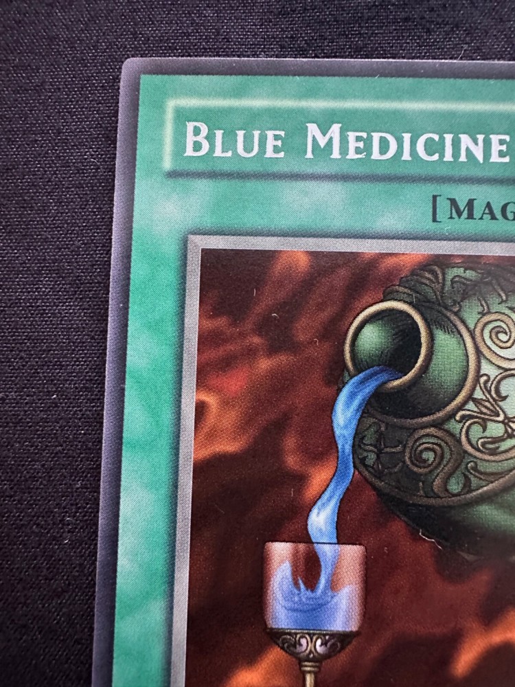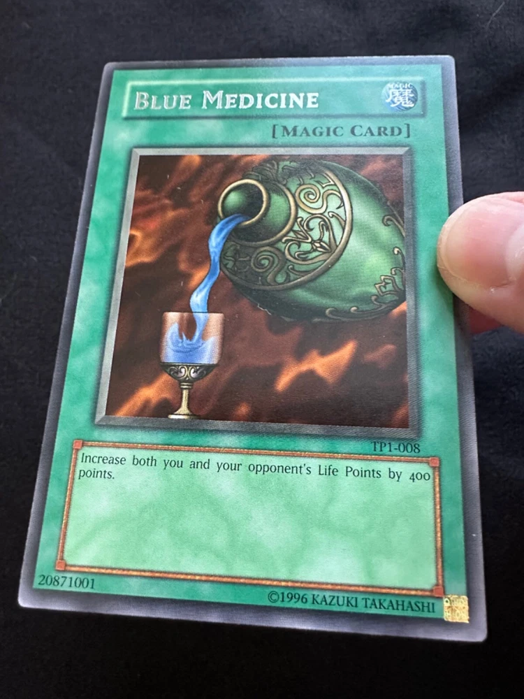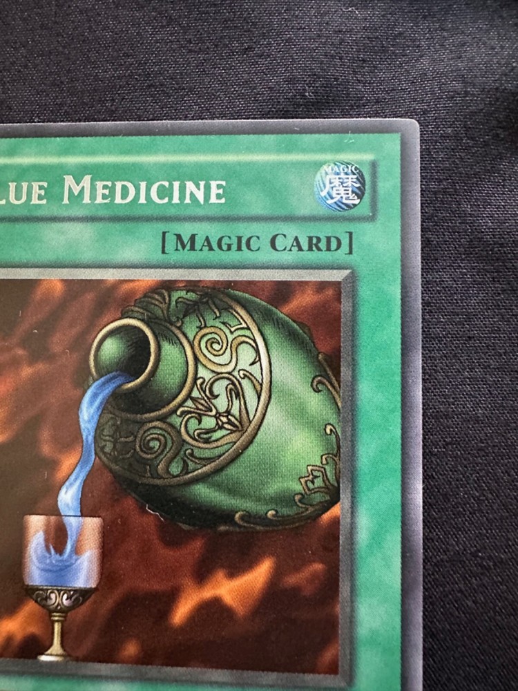 Blue Medicine Rare from Tournament Pack 1. I am not a professional grader, but I would estimate NM- due to a few scuffs on the back. This card comes from a smoke-free, pet-free home and will be shipped in a box.