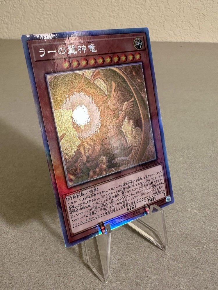 The Winged Dragon of Ra card from the Yu-Gi-Oh! TCG is a Holographic Rare collectible card from the Duelist Pack: Duelists of Gloom set. Manufactured by Konami in Japan, this Japanese-language card features the iconic character The Winged Dragon of Ra in foil finish. Perfect for fans of Yu-Gi-Oh! aged 6 and above, this near mint or better card is a sought-after addition to any collection. Card is in near mint condition, please reference the pictures. If you have any questions don’t hesitate in reaching out. Thank you for looking.