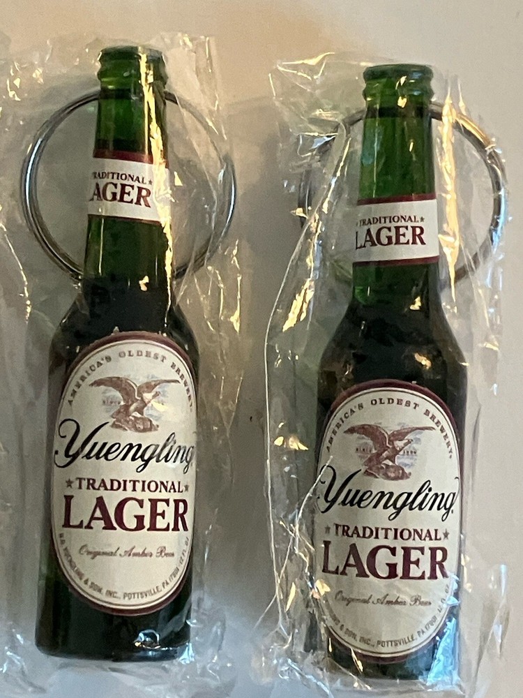 2 brand new/sealed miniature Yuengling Traditional Lager bottle key chains/bottle openers. Sealed. 2 individually packaged. New. Thanks for looking. Now for the fine print…… I use the good old USPS for all shipping. Despite their recent increase in shipping rates, I try to charge fair shipping. On certain items I charge a $1.00 handling fee to offset the price of bubble wrap, boxes, Styrofoam peanuts, etc. I’m very happy to combine shipping on multiple items that you purchase. I ship every day; Monday through Friday (except for snow and ice events) but do not ship on Saturdays.