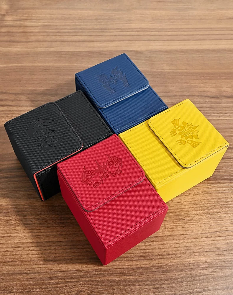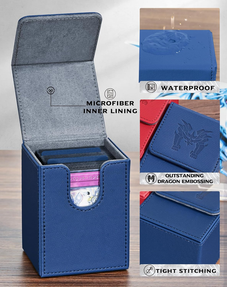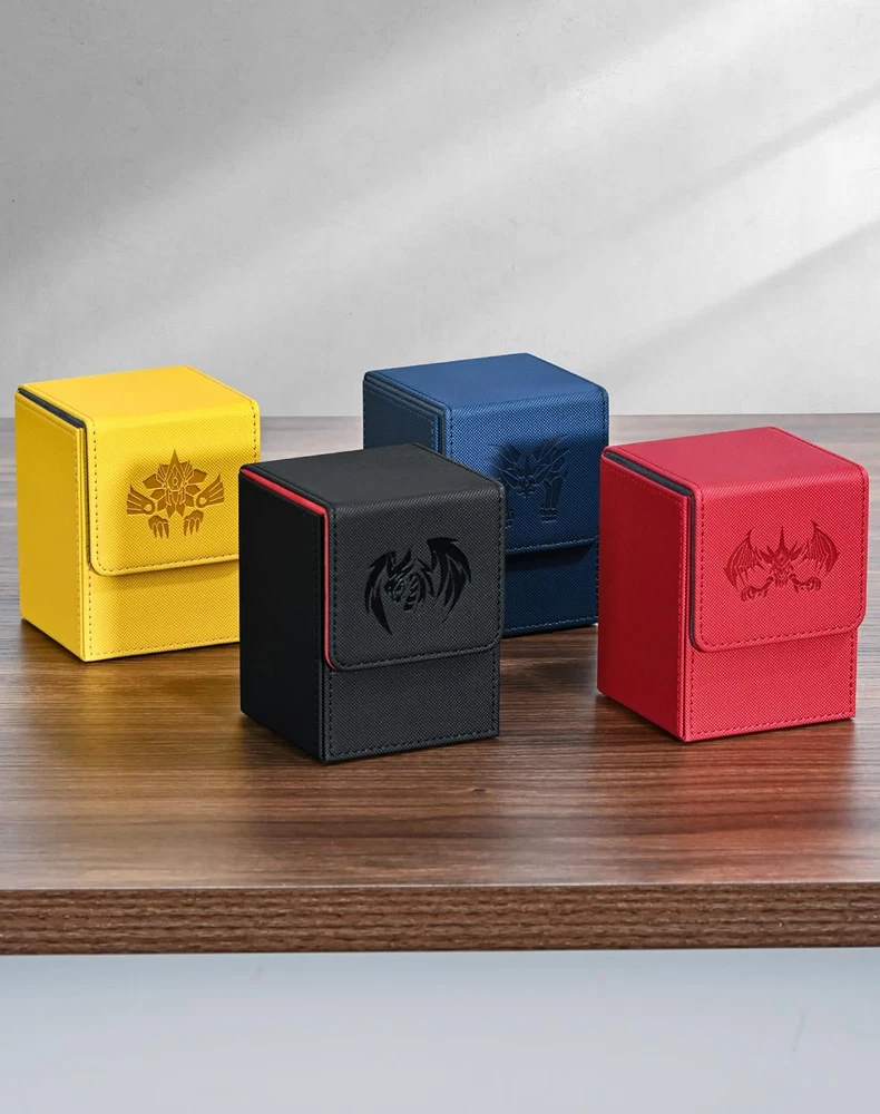 This deck box is a must-have for any TCG player! The premium PU leather feels sturdy yet sleek, and the soft interior keeps cards safe from scratches. It easily fits 100+ single-sleeved cards, and the dividers help organize multiple decks. The strong magnets keep it securely closedโno spills! Perfect for Yu-Gi-Oh, MTG, or Pokรฉmon cards. Great quality for the price!
