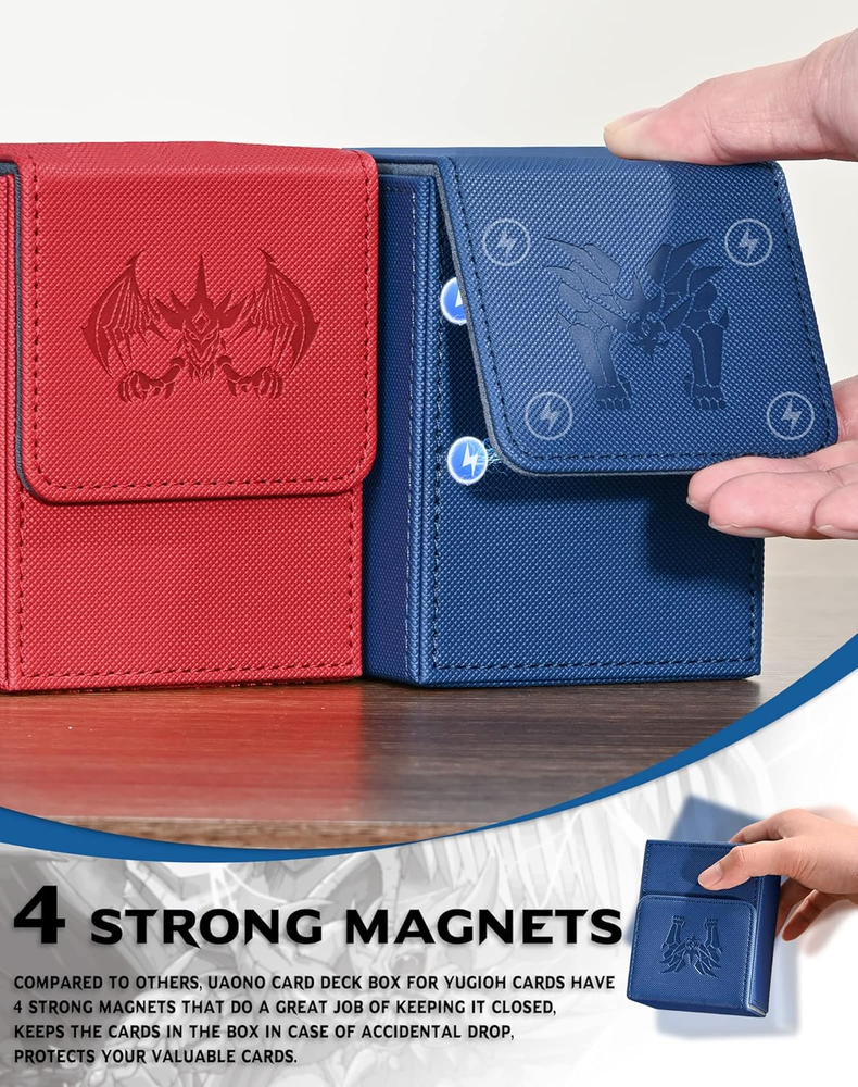 ๐พ๐ฌ๐ณ๐ณ ๐ช๐น๐จ๐ญ๐ป๐ฌ๐ซ: This yugioh deck box is crafted from durable polyurethane leather, superior to most other faux leathers. The interior features a soft texture that protects your cards from scratch, ensuring they remain in excellent condition during transport ๐ฏ๐ฐ๐ฎ๐ฏ ๐ช๐จ๐ท๐จ๐ช๐ฐ๐ป๐: The trading card box can comfortably hold 80+ double-sleeved cards or 100+ single-sleeved cards. The 2 extra dividers are ideal for separating your different decks ๐บ๐ป๐น๐ถ๐ต๐ฎ ๐ด๐จ๐ฎ๐ต๐ฌ๐ป๐บ: Compared to others, the mtg card box features 4 pairs of strong magnets that ensure a secure closure. This design keeps your cards safely inside even if dropped accidentally, offering superior protection for your valuable cards ๐ฉ๐ฌ๐จ๐ผ๐ป๐ฐ๐ญ๐ผ๐ณ ๐ฌ๐ด๐ฉ๐ถ๐บ๐บ: The series of card deck boxes are embossed with various dragon designs and available in a range of colors. The clear, detailed dragon emblems add a distinctive touch, helping you stand out among all players ๐ท๐ฌ๐น๐ญ๐ฌ๐ช๐ป ๐ฉ๐ถ๐ฟ: The UAONO commander deck box is ideal for taking to the game store or a friend's house for game night. Suitable for MTG, PKM, sports card and more. Highly recommend it to anyone who plays trading card games Product Description
