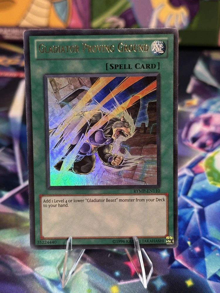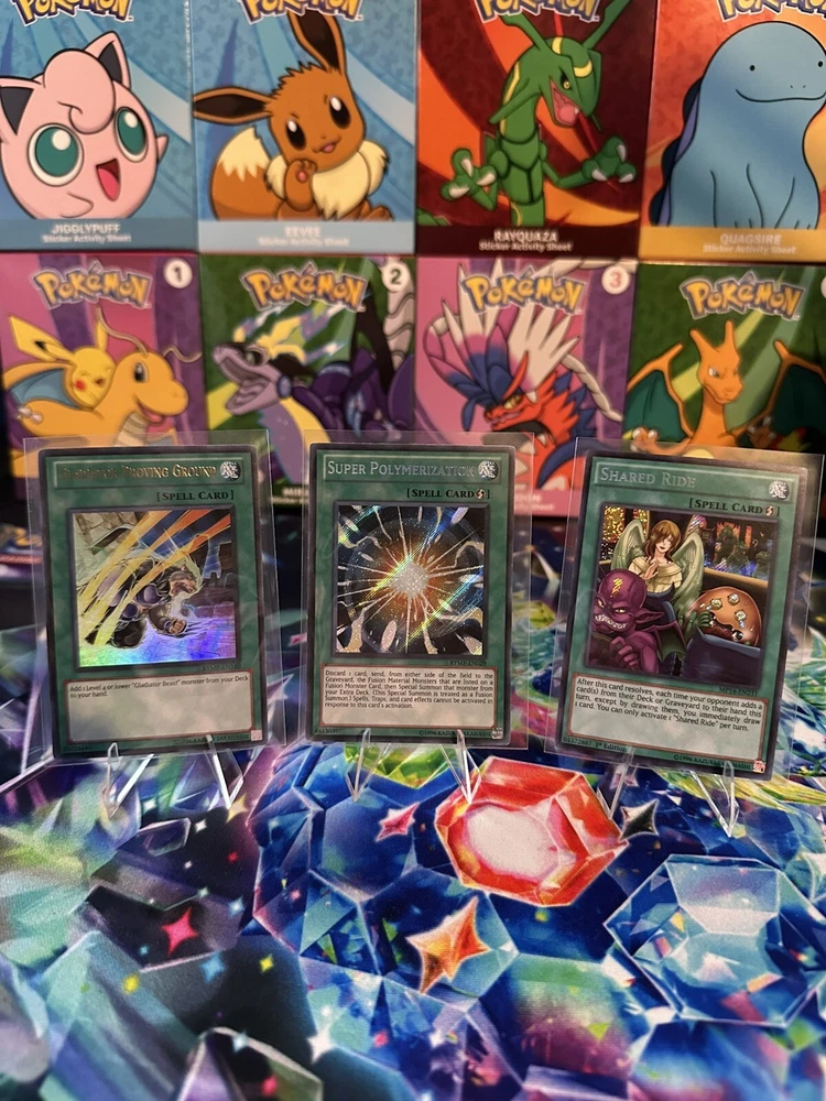 Yugioh Super Rare x1(Gladiator Proving Ground), Ultra Rare x2(Super Polymerization, Shared Ride) Spell Card Lot