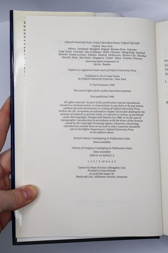 INTERNATIONAL LAW, HUMAN RIGHTS, AND JAPANESE LAW: THE IMPACT OF INTERNATIONAL LAW ON JAPANESE LAW Author: Iwasawa, Yuji Title: INTERNATIONAL LAW, HUMAN RIGHTS, AND JAPANESE LAW: THE IMPACT OF INTERNATIONAL LAW ON JAPANESE LAW Publication: Oxford: Clarendon Press, 1998 Edition: First Edition, First Printing Description: Octavo, 355 pages. In Very Good minus condition with a Very Good dust jacket. Spine navy blue with white lettering. Dust jacket protected with mylar covering. Slight warping to text block. Interior pages clean. Shelved Case 8 1/2. Seller ID: 1392453 Subject: Asian History & Culture, Dupont Circle, Politics, Government, and Law Welcome to the eBay store of Second Story Books! DC's Oldest Rare and Used Bookstore, Second Story Books operates two open shops in the Washington D.C. metropolitan area. We have an extensive internet presence and provide accredited appraisals member ASA. This listing was created by Bibliopolis.