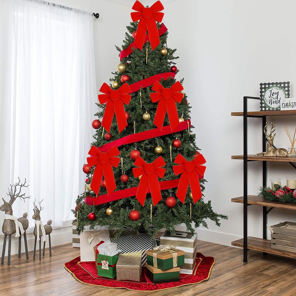 Yuubin 10 Pcs Red Bows Christmas Tree Decorations,9”x13” Large Velvet Wreath ... Unique Material: These christmas tree bows are made of velvet material with gold wired edge. The unique edge fine iron wire design that can manually restore bloom even if squashed,and it never wither. Larger Size: These red bows christmas decorations approx: 9in x 13in/23cm x 33cm. Large size bow is more conspicuous and Get more compliments. Classic Design: These outdoor christmas bows are featured with classic velvet material, decorated with gold wired edge, which connect classic design and christmas holiday style into one; It's full of festive feeling in appearance, can highlight the warm atmosphere of the festival after being applied. Applicable Scenes: Versatile decoration for your christmas bows decorations, you can tie the red christmas bows for wreaths, trees,windows, doors, walls, stairs, fences, fireplace, etc. add elegance and beauty to your home, office, yard, party, wedding, picnic,holiday and other occasions. Great Gifts: These large christmas bows will be an ideal choice for gifts giving in christmas holiday, you can directly prepare these beautiful bows as crafting gifts for your friends who love DIY, or use these bows to decorate your holiday gifts and send the gifts to your family, lover, relatives, colleagues or other people. 10 Pcs Red Bows Christmas Tree Decorations,9”x13” Large Velvet Wreath Bow with Glitter Gold Edge for Xmas Home Fence Stairs Railing Fireplace Indoor Outdoor Front Door Decor Shipping We offer FREE shipping on all orders! We ship within Three business days of payment, usually sooner. We use a selection of shipping services such as UPS, FedEx, USPS etc. We only ship to the lower 48 states, no APO/FPO addresses or PO Boxes allowed. Local pickups and combined shipping options are not provided at this time. Return You can return a product for up to 30 days from the date you purchased it. Any product you return must be in the same condition you received it and in the original packaging. Please keep the receipt. Payment We accept payment by any of the following methods: PayPal Please pay as soon as possible after winning an auction, as that will allow us to post your item to you sooner! Feedback Customer satisfaction is very important to us. If you have any problem with your order, please contact us and we will do our best to make you satisfied. Contact Us If you have any queries, please contact us via ebay. We usually respond within 24 hours on weekdays. Please visit our eBay store to check out other items for sale! Thank you for shopping at our store.