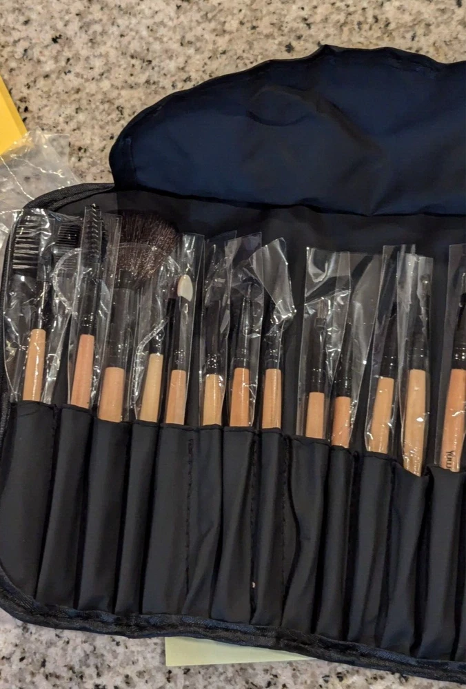 Yuwaku Professional Makeup Brush Set 32 piece Eyeliner Blending Brushes Professional make-up brush 8x Angled coutour brush (for different use or replacement),4 x Concealer Brush,4x eyeshow brush, 3x Small Roundshadow Brush , 3 x Sponge Eyeshadow Brush, 2 x Eyeliner Brush, 1x Nose shading brush, 1x Angle powered brush, 1 x Lip brush,1 x Eyebrow Brush,1x Foundation Brush, 1x Large Fan Brush, 1x Small Fan Brush, 1x lash brush, +1 x nylon bag