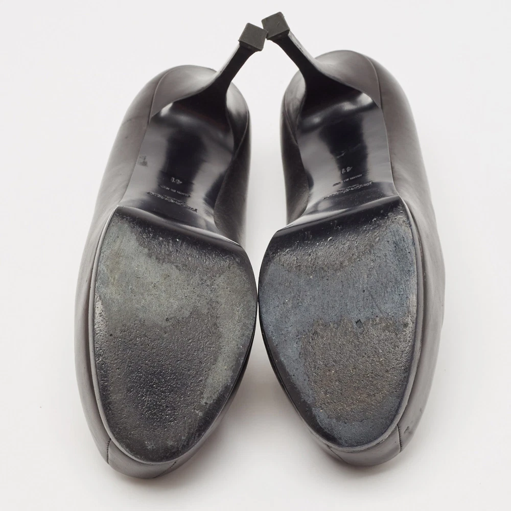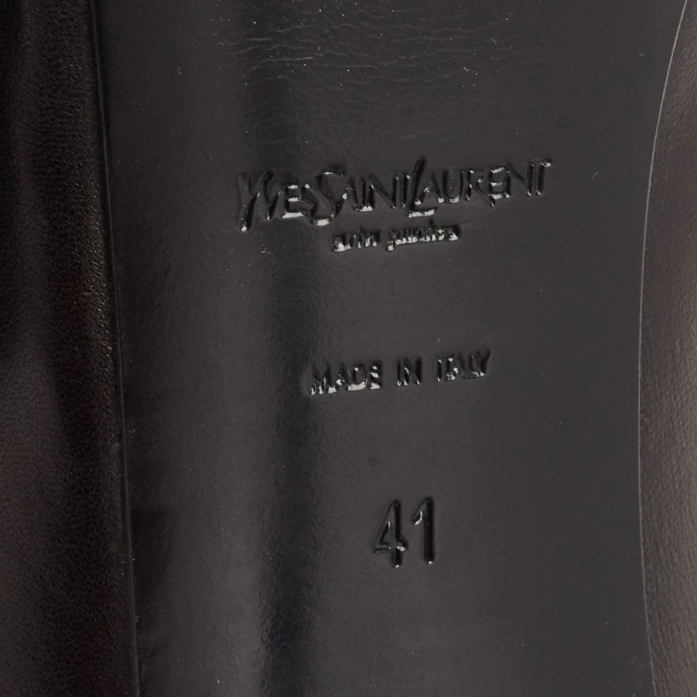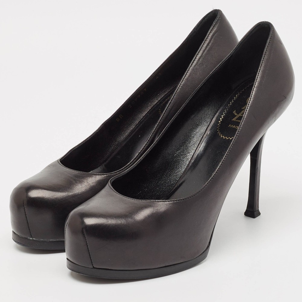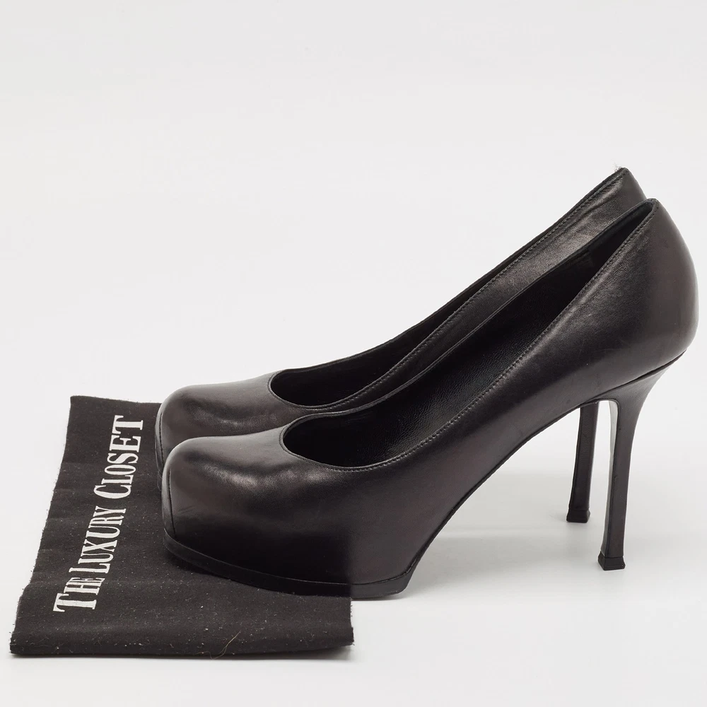 These black leather pumps from Yves Saint Laurent feature a sleek and timeless design. The Tribtoo silhouette, with its elegant rounded toe and high heel, adds a touch of class to any outfit. A perfect choice for both office wear and evening events, offering style and comfort.Certified by The Luxury Closet - This item has gone through a detailed authentication process overseen by our experts. We offer a lifetime guarantee of authenticity on all our items. Import duties, taxes and charges are not included in the item price. These charges are the buyers responsibility. Please check with your country’s customs office to determine what these additional cost will be prior to buying. Our eBay Store About Us Contact Us Add to Favorite Sellers Yves Saint Laurent Black Leather Tribtoo Pumps Size 41 $185.9 These black leather pumps from Yves Saint Laurent feature a sleek and timeless design. The Tribtoo silhouette, with its elegant rounded toe and high heel, adds a touch of class to any outfit. A perfect choice for both office wear and evening events, offering style and comfort. Product Details Brand Color Black Dimensions Material Leather Size 41 Outsole Width 7.5 cm Outsole Length 25 cm Heel Height 11.5 cm Includes The Luxury Closet Packaging Certified by The Luxury Closet This item has gone through a detailed authentication process overseen by our experts. We offer a lifetime guarantee of authenticity on all our items. How We Check The in-house team of experts at The Luxury Closet is highly trained to verify the authenticity and the condition of the luxury products. They ensure that only 100% authentic items are put on sale.The evaluation process is unique with its own mix of assessment criteria and differs according to the category. Each item is evaluated based on the following combination of hallmarks, hardware, stitching, symmetry, material, craftsmanship, stamping, codes, hologram stickers, and packaging. Our authenticators also check if the items have been modified or amended (e.g., aftermarket diamonds, replaced batteries, repaired bags, etc.) International Buyers Import duties, taxes and charges are not included in the item price. These charges are the buyers responsibility. Please check with your country’s customs office to determine what these additional cost will be prior to buying.