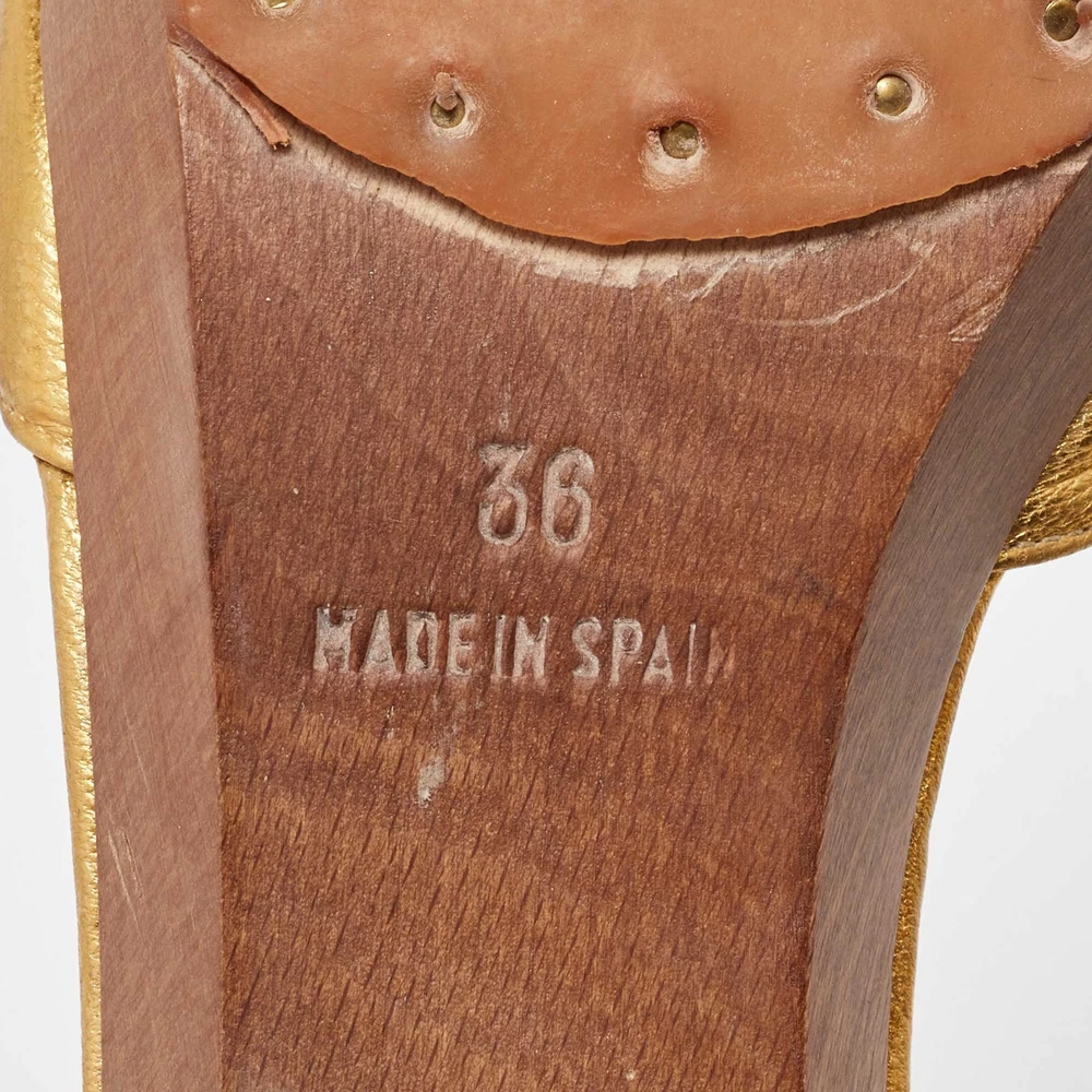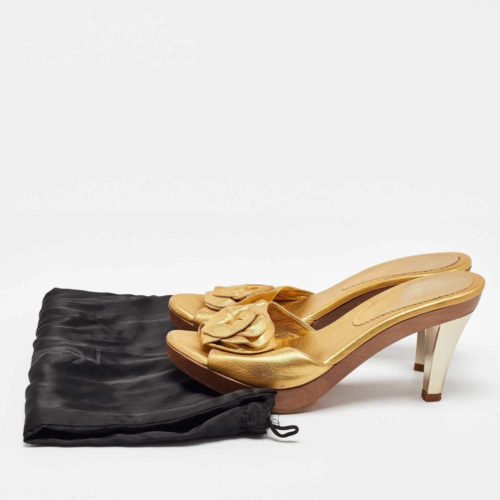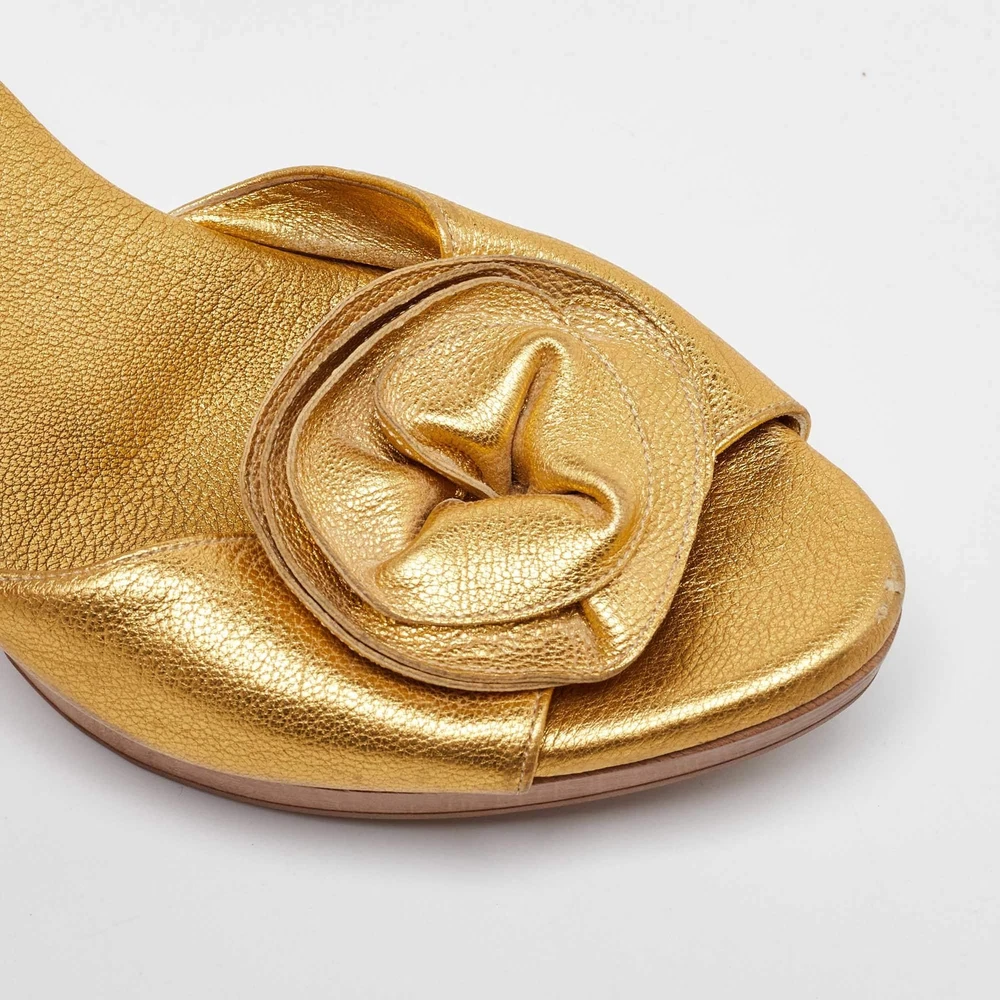 Yves Saint Laurent Metallic Gold Leather Najda Rosette Platform Sandals Size 36