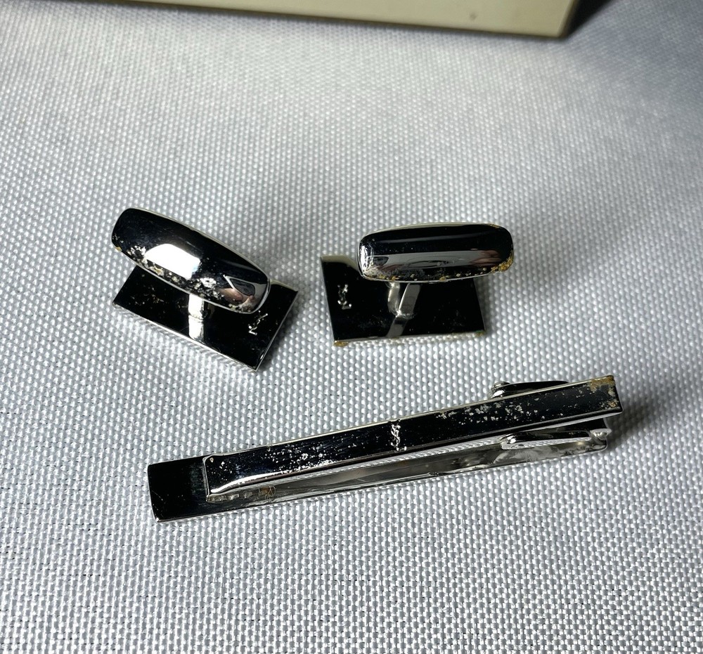 Information We cannot offer such a large discount as half price, but please feel free to send us your best offer. We will consider it as much as possible. It depends on the time of payment. Basically, we will ship the same day or the next day. (Shipping may be delayed due to business trips or other reasons. In that case, we will contact you via message). I purchased this item several years ago from an online store in Japan. Yves Saint Laurent Y Logo mirrored silver x dark navy Tie Pin cufflinks set Rare discontinued vintage model. The Y line of Yves Saint Laurent's initial design and the mirrored silver and dark navy are eye-catching. The elegant coloring gives off the luxurious aura of a high-end brand. This item only From casual to dressy occasions This is a magical one-point item that works in a wide range of fields and elevates your coordination. Don't miss this opportunity! Shipping Depending on the time of payment,Basically, we ship the same day or the next day. (Sometimes shipping may be delayed due to business trips. In that case, we will contact you via message.) Item Descriptiont Color: Mirrored silver and dark navy Material: unknown Size: Necktie pin About 5.2 x 0.6 cm (2.047 x 0.236 inches) Weight 8g Cuff links About 1.9 x 1.2 cm (0.748 x 0.472 inches) Weight 6g x 2 Condition:Beautiful Vintage There are some age-related dulling and deterioration characteristic of vintage models on the back portion, The main surface is clean and hidden when worn, so it is not visible. The clip is not loose. The surface of the watch is in good condition and shines well. Accessories: Genuine case (The genuine case is stained, deteriorated, and damaged over time.) Other accessories for Yves Saint Laurent model and We also have a large selection of luxury models such as Hermes, Tiffany & Co, Cartier, Bvlgari, Saint Laurent, Celine, Burberry, Valentino, Philippe Chariol, Montblanc, Dunhill, Versace, Givenchy, Montblanc, etc. I would appreciate it if you could watch it “To ensure that buyers can conduct transactions with peace of mind” We are responsible for all products we sell. Customer feedback excellent seller. Communication went well. Even though I came to America from Japan, I was told that the product would arrive quickly and in time for my specific birthday. High quality products are also available! Highly recommended! ++++++ Great seller! They were very responsive and the product description was accurate. I strongly recommend it! This is a very popular seller and is easy to do business with. The cufflinks were mint quality. I would be happy if you could respond. Oh, and his TKU to the A+++ seller for careful packaging and safe and surprisingly fast delivery of a beautiful PC. Excited by the rich quality look and feel of the metalwork, it looks like new and is perfect in every way. His TKU to the seller was also strong and clear communication from start to finish, which led to a wonderful and positive transaction. We have received many opinions regarding the text above, so please feel free to purchase with confidence. Of course, please rest assured that all of the products we sell are genuine products. We look forward to doing business with you!