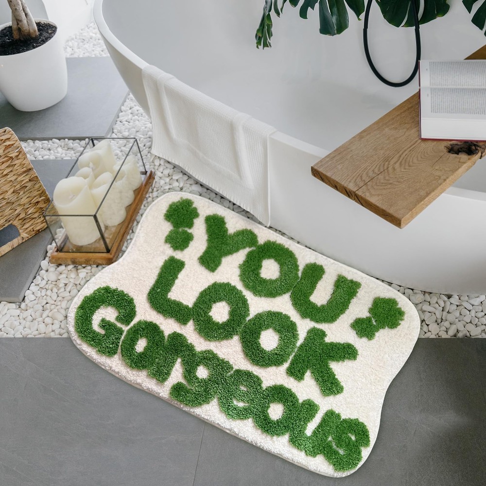 ZALL Green White Bath Mat for Stylish You Look Gorgeous Bathroom Rugs