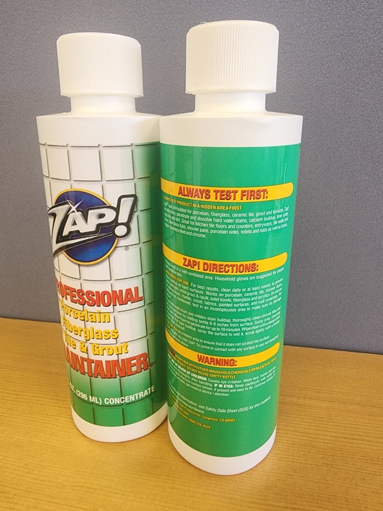 ZAP! 2 - 10 oz Professional Maintainer Tile & Grout Cleaner NEW! Sealed . Two Brand New and Sealed. Detail pictures are attached. Sold as is as pictured in the listing.