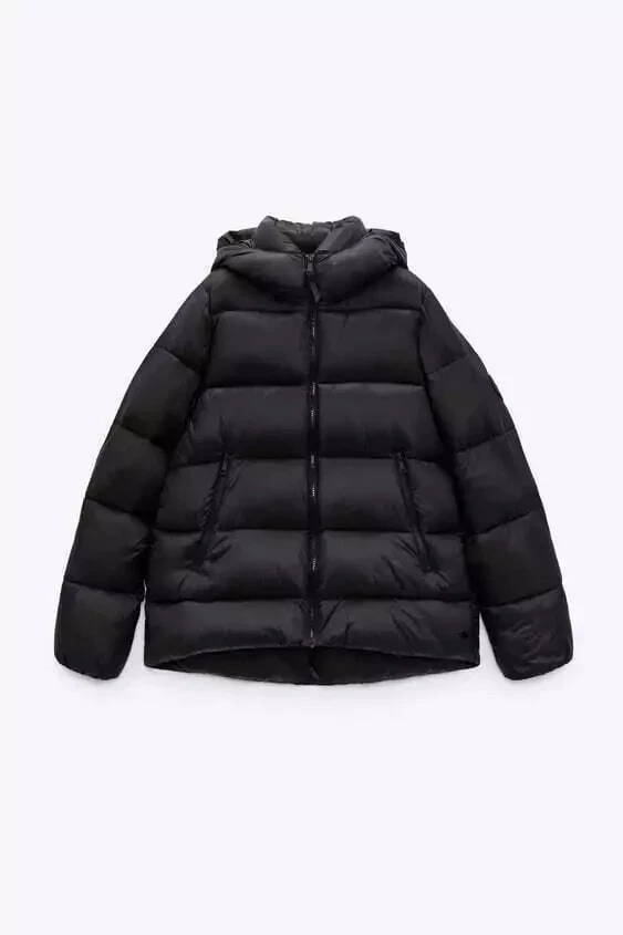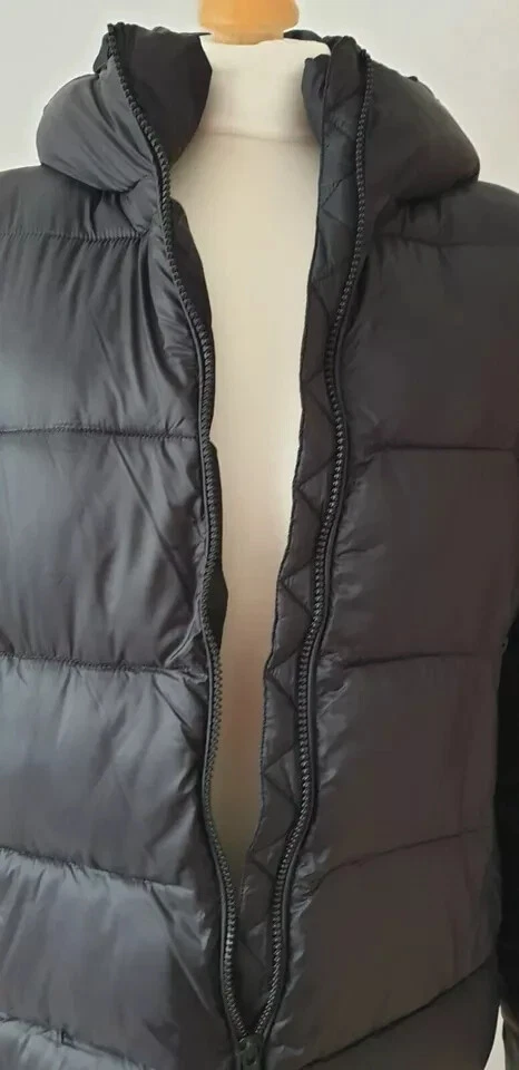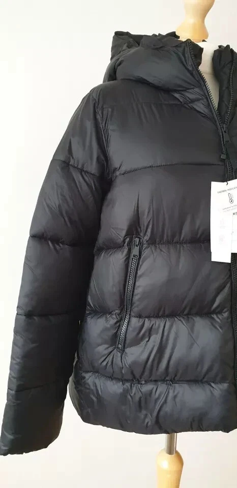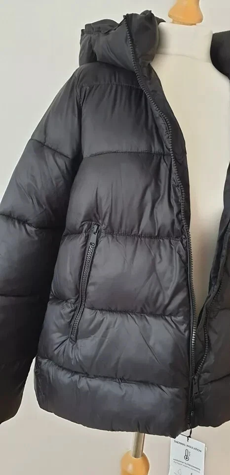ZARA BLACK COMFORTEMP® THERMAL INSULATION PUFFER JACKET BNWT SIZE M Slight Uneven stitch on the shoulder / Please see last 2 photos PRICE REDUCED Hooded puffer jacket with a high collar. Long sleeves with elastic trims. This garment contains a Comfortemp® Thermal insulation by FREUDENBERG: An ultra-soft thermal insulation filling material that retains body heat. It is lightweight, breathable and easy to clean. Front zip pockets. Asymmetric hem. Zip-up front fastening. Approximate measurements are as below; Arm pit to pit approx. 22" Length approx. Front approx. 25" back longest par from nape to hem approx.27" Sleeve approx. 25" Shoulder from back approx. 16" OUTER SHELL 100% nylon LINING 100% nylon FILLING 100% polyester Thank you for looking SORRY, NO RETURN