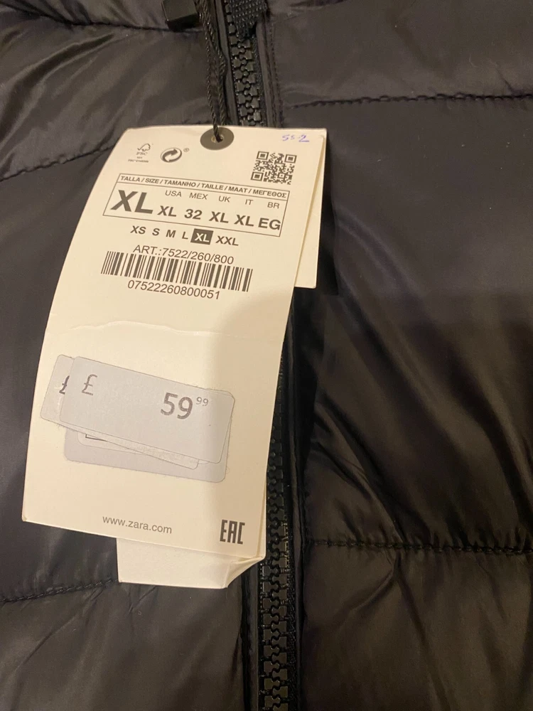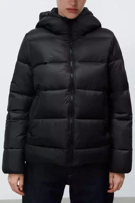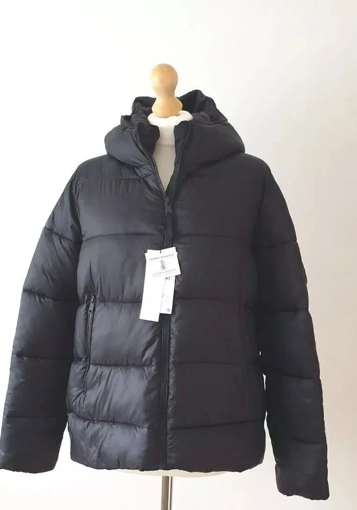 ZARA BLACK COMFORTEMP® THERMAL INSULATION PUFFER JACKET NEW WITH DEFECTS SIZE XL Due to storage slight defect/ please see last 3 photos PRICE REDUCED Hooded puffer jacket with a high collar. Long sleeves with elastic trims. This garment contains a Comfortemp® Thermal insulation by FREUDENBERG: An ultra-soft thermal insulation filling material that retains body heat. It is lightweight, breathable and easy to clean. Front zip pockets. Asymmetric hem. Zip-up front fastening. Approximate measurements are as below; Arm pit to pit approx. 24.5" Length approx. Front approx. 25.5" back longest par from nape to hem approx.27.5" Sleeve approx. 25.5" Shoulder from back approx. 17" OUTER SHELL 100% nylon LINING 100% nylon FILLING 100% polyester Thank you for looking SORRY, NO RETURN