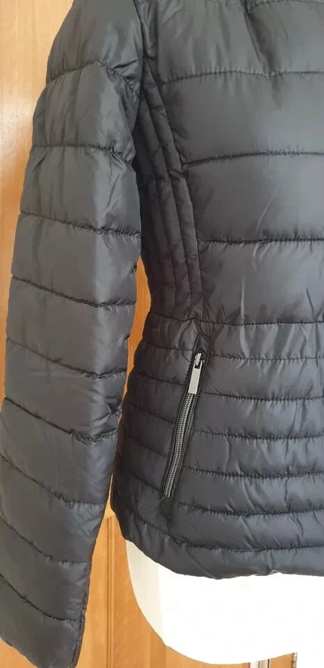 ZARA BLACK SORONA WATER REPELLENT LIGHT WEIGHTJACKET COAT BNWT SIZE XS Fitted jacket featuring a high collar with adjustable drawstring hood and long sleeves. Front zip pockets. Zip-up front. BLACK | 5071/222 100% polyester LINING 100% polyester FILLING 100% polyester Approximant measurements are as below; Armpit to pit approx. 18""Shoulder approx.15"Sleeve approx.25"Length approx. 22.5" Waist Approx. 15" Thank you for looking SORRY, NO RETURN
