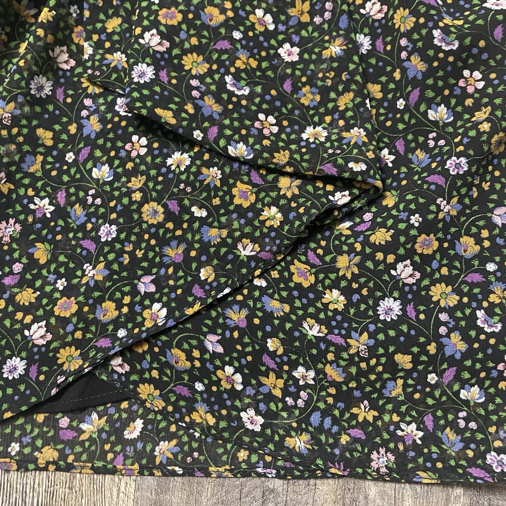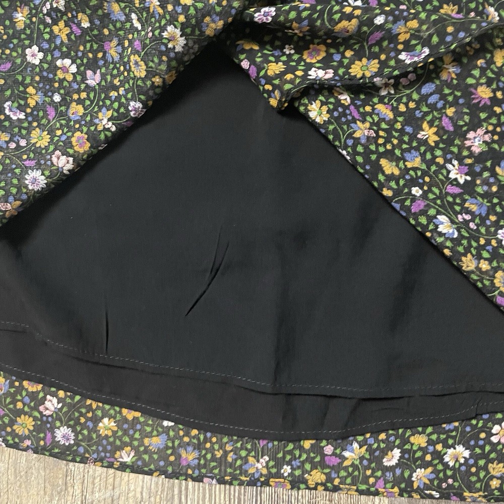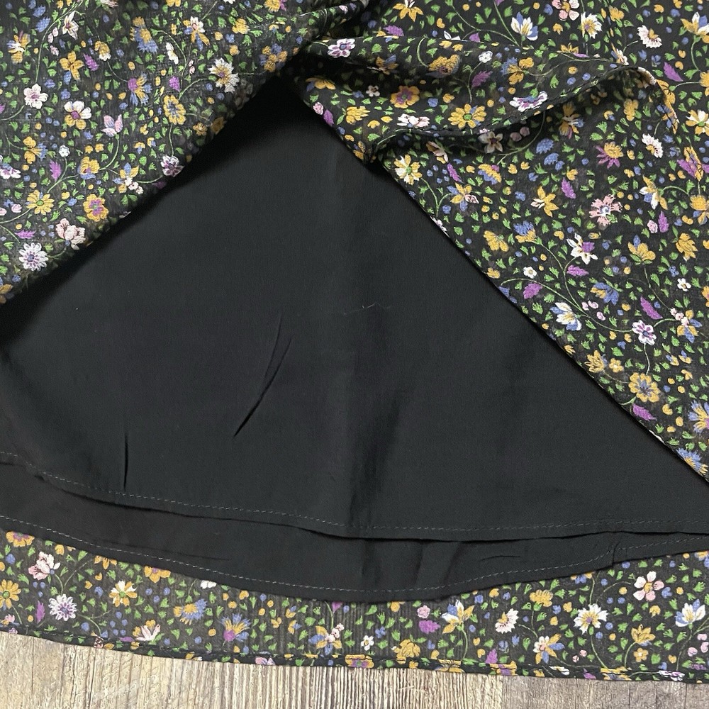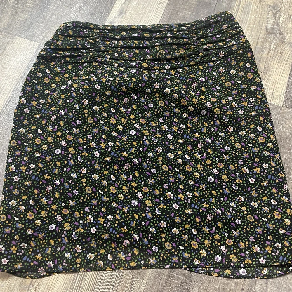 The ZARA Black Floral Print Ruched Mini Skirt in size S is a stylish and versatile piece perfect for various occasions. The skirt features a vibrant floral pattern, ruched detailing, and a zip closure for easy wear. Made from polyester fabric with a medium wash, this skirt is designed for a regular fit and mini length, making it ideal for summer, fall, and spring seasons. The colorful theme adds a playful touch to the black base, making it a perfect addition to any woman's wardrobe for both party and casual looks.