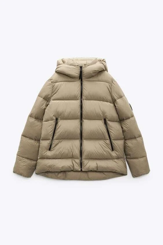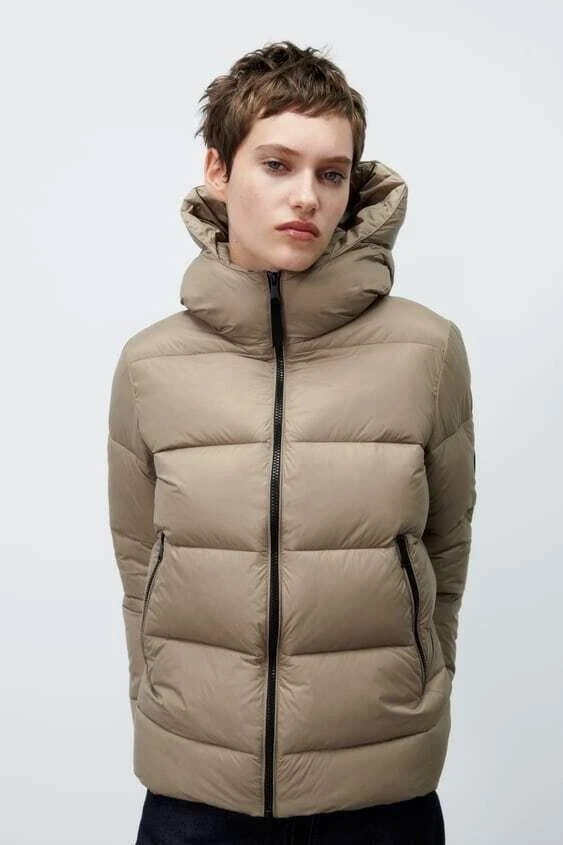 Outer Shell Material: Nylon Vintage: No Season: Autumn, Spring, Winter Lining Material: Nylon Brand: Zara Department: Women Accents: FRONT POCKETS, ULTRA SOFT THERMAL INSULATION, BREATHABLE, ASYMMETRIC HEM, HIGH COLLAR Jacket/Coat Length: Short Style: Puffer Jacket Type: Jacket Features: Breathable, Collared, Hooded, Thermal, front zip Colour: CAMEL Occasion: Business, Casual, Formal, Party/Cocktail, Travel, Workwear Size Type: Regular Closure: Zip Size: XL