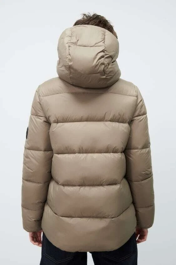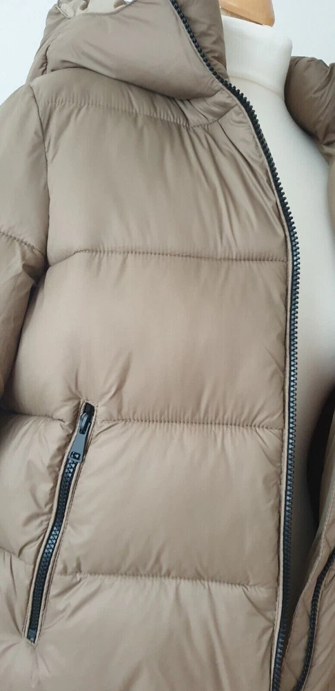 ZARA CAMEL COMFORTEMP® THERMAL INSULATION PUFFER JACKET BNWT SZE XL Hooded puffer jacket with a high collar. Long sleeves with elastic trims. This garment contains a Comfortemp® Thermal insulation by FREUDENBERG: An ultra-soft thermal insulation filling material that retains body heat. It is lightweight, breathable and easy to clean. Front zip pockets. Asymmetric hem. Zip-up front fastening. OUTER SHELL 100% nylon LINING 100% nylon FILLING 100% polyester Approximate measurements are as below; Arm pit to pit approx. 21" Length approx. Front approx. 25" back longest par from nape to hem approx.27" Sleeve approx. 24.5" Shoulder from back approx. 15.5" Thank you for looking SORRY, NO RETURN