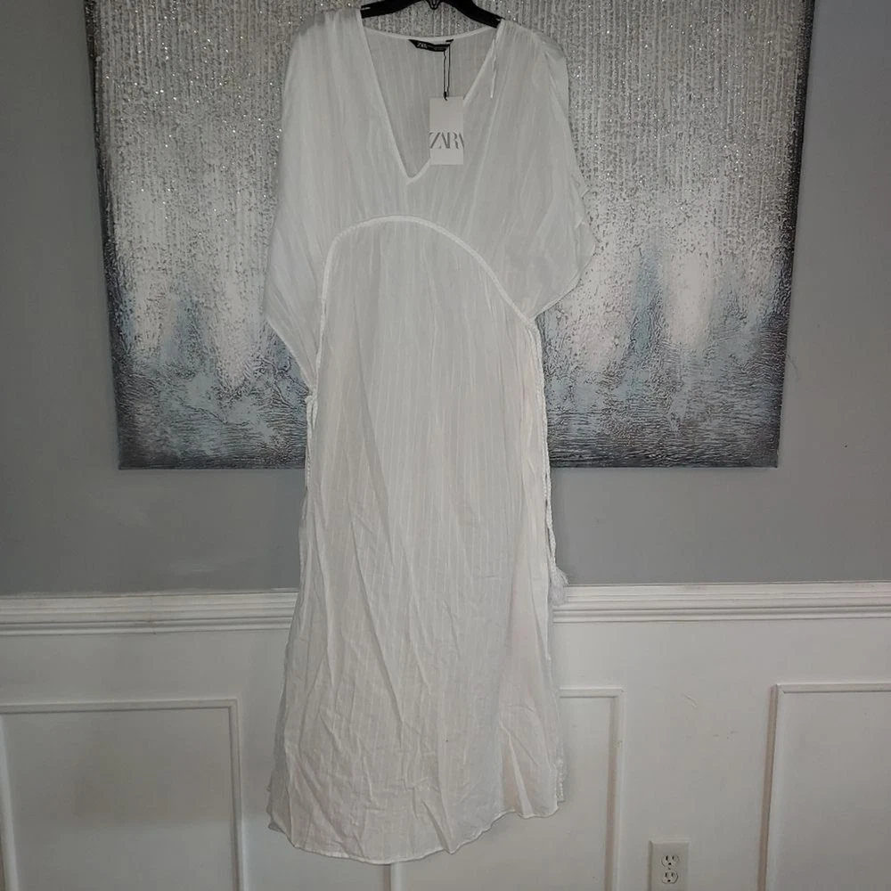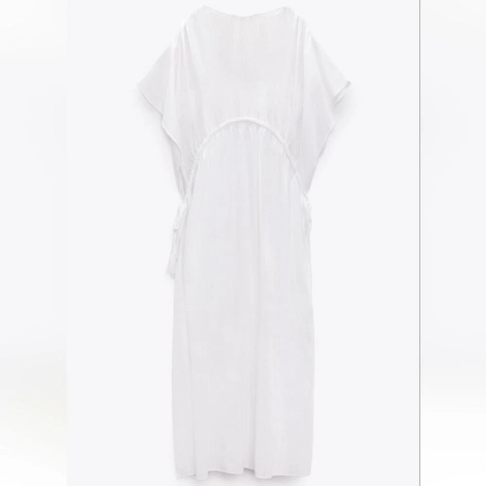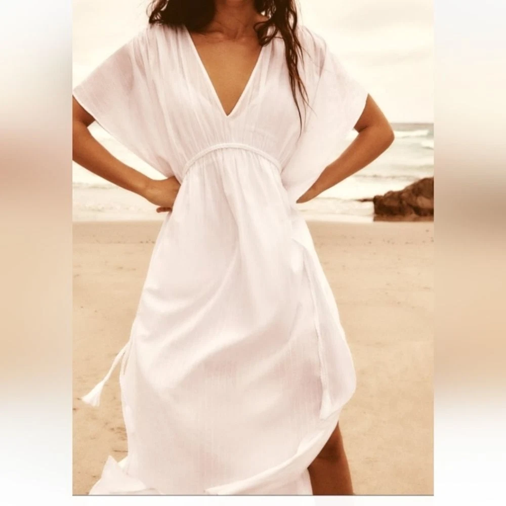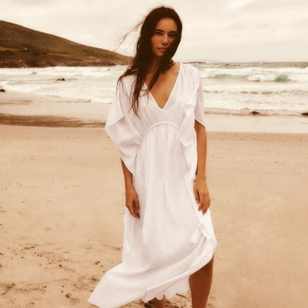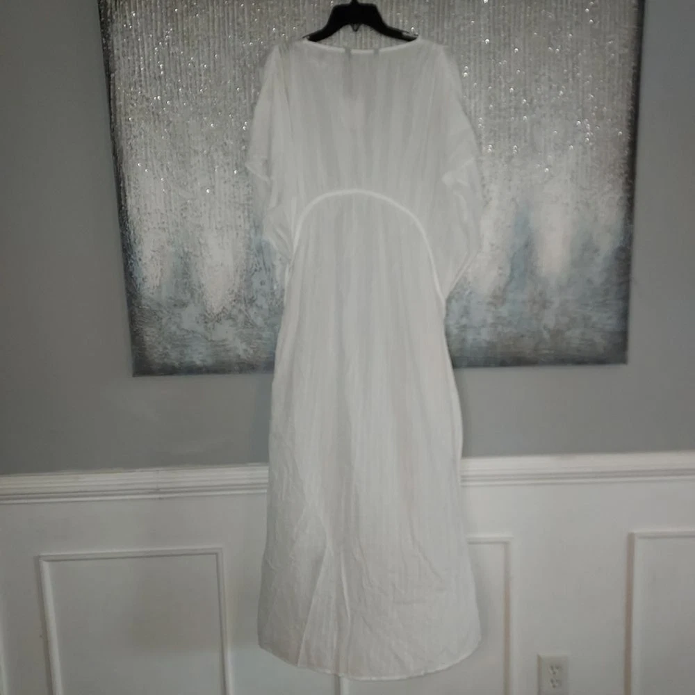 short sleeves kaftan summer dress. v-neckline with side ties. interior lining, side slit lightweight, oversized, beachy, coastal grandma 100% cotton