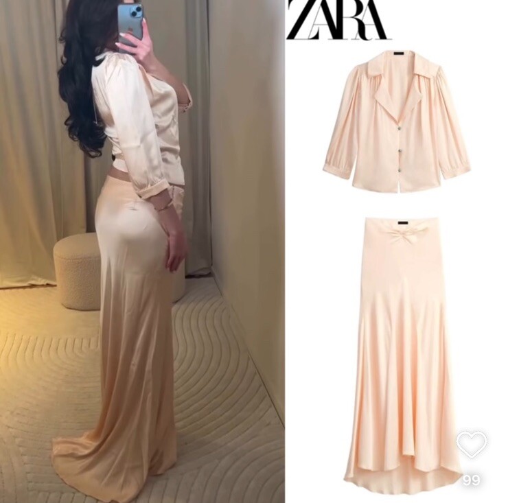 Elevate your wardrobe with this sophisticated ZARA pale pink long pleated skirt set, a testament to contemporary fashion. Accompanied by a chic blouse, as worn by Kate Moss, this ensemble epitomises modern style with its sleek design and pleated detailing, offering a flattering silhouette for any occasion. Crafted from 100% viscose for a lightweight feel, the skirt boasts a convenient zip closure, making it a practical choice for a variety of events, from business meetings to weddings. In a versatile size S, this skirt and blouse set is a timeless addition to your collection, seamlessly transitioning from day to evening wear.