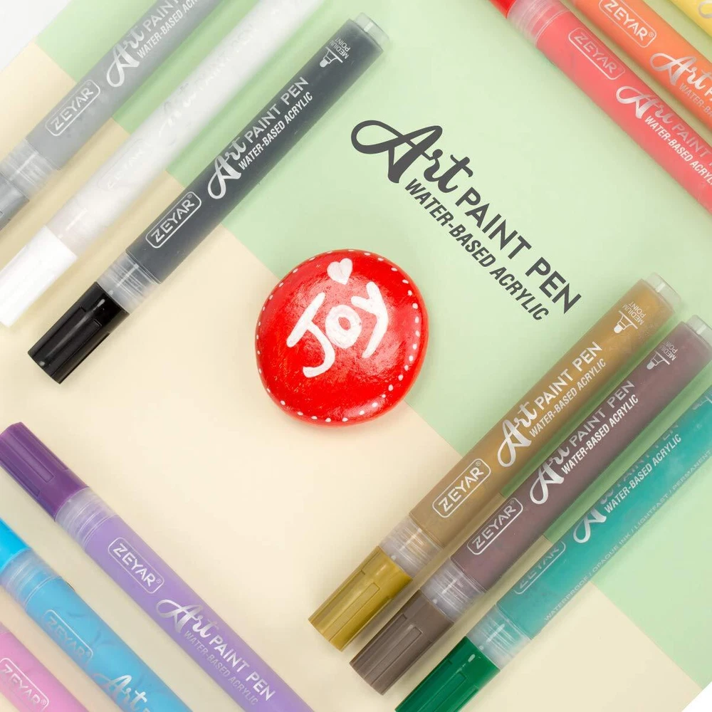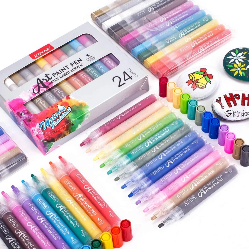 ZEYAR is a professional art&crafts artwork manufacturer The world of science is full of many beautiful colors! Some of the colors in our world cannot be seen with just your eyes, but we are trying to give you more colors for your options. Vibrant 18 colors: This size pen is ideal for the detailing and outlining you're likely to do. Made with Water-Based ink and Acrylic material tips, which can help create a colorful world, give you more options to improve your imagination. Excellent quality: Advanced valve-action structure inside the marker. Non-toxic, xylene free and safe to use. Conforms to ASTM D-4236 certificate. Nearly any surface for drawing: Suitable for rocks, canvas, paper, wood, metal, glass, plastic, leather and so on. No Fuss, No Mess & No Worries Recap after use and no food contact. USA Brand ZEYAR. Valve Mechanism: Great control of ink and gas, High-Technology, Archival Quality, Safe for Use by Children Multi-Colors: 24 vibrant colors: Black, Smoke Grey, Brown, White, Bright Blue, Red, Wine Red, Light Magenta, Skin Pink, Orange, Yellow, Green, Olive Green, Light Green, Pastel Blue, Blue, Violet, Pastel Pink, Pink, Pastel Yellow, Pastel Green, Pastel Violet, Pastel Brown, Gold, Silver Ink made in Italy: Conforms to ASTM D-4236 certificate, non-toxic and acid free. But don't swallow it and No food contact Quick-drying, erasable with hard scrape and soluble in water; suitable for repeated drawings on the same surface Smooth Writing: Writes on nearly any surface with your imagination and creation, allowing you to easily write on paper, stone, rubber, ceramics, wood, canvas, glass and plastic! WE CARE ABOUT ALL CUSTOMERS: Here at ZEYAR, we are professional markers manufacturer with sophisticated R&D, Quality control processes to ensure all our products maintain great quality. For us, drawing is an expression of the human feelings and experience. That’s why we work to make Our markers supplies accessible to all people
