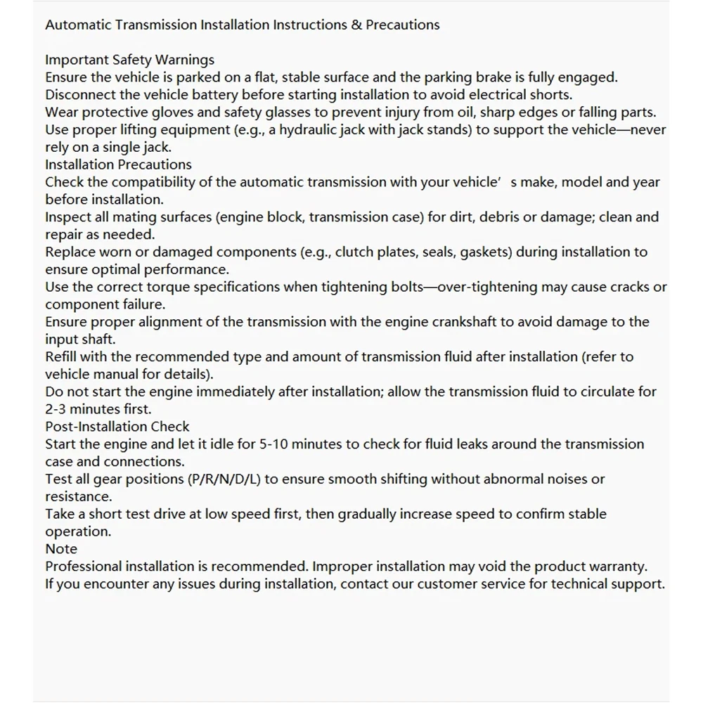 Fitment: For Audi A8 3.0T V6 Supercharged quattro 4WD/RWD 2010-2017 For Audi A8 4.0T V8 Turbo quattro 4WD/RWD 2010-2017 For Audi A8 3.0T V6 TDI quattro 4WD/RWD 2010-2017 For Audi A6/A6L 3.0T V6 Supercharged quattro 4WD 2011-2018 For Audi A6/A6L 2.8L V6 NA quattro 4WD 2011-2018 For Audi A6/A6L 3.0T V6 TDI quattro 4WD 2011-2018 For Audi A6/A6L 3.0T V6 Supercharged quattro 4WD 2018-2020(Early C8) For Audi Q5 3.0T V6 Supercharged quattro 4WD (S line/Offroad Trim) 2008-2017 The above models are for reference only. If you are not sure whether our products fit your vehicle, please contact us for an inquiry. Thanks! OE/OEM Part Number: 1087435079,0BK300038A,0BK300040F003 Package Include: 1 x Automatic Transmission (As shown in the figure) Store Categories Store Categories Long Block Engine Assembly Crankshaft Set Camshaft Set Cylinder Head Assembly Cylinder Head Set Gasket Set Piston Kit Rocker arm Lifter Set Seal Kit Timing Set Block Engine Assembly Motorcycle Parts Connecting rod Bearing Valve Set Others Other ZF 8HP55 8HP55 Automatic Transmission For Audi A8 A6 Q5 3.0T V6 4WD 1087435079 Features: Brand: HEKON Auto Parts Zone Status: In Stock Condition: Brand New and High Quality Product. Warranty: It is backed by our warranty (1 years) Fast shipping and good operation Total new and high q uality Please note your Vehicle Identification Number (VIN) when placing an order!!!!!! Fitment: For Audi A8 3.0T V6 Supercharged quattro 4WD/RWD 2010-2017 For Audi A8 4.0T V8 Turbo quattro 4WD/RWD 2010-2017 For Audi A8 3.0T V6 TDI quattro 4WD/RWD 2010-2017 For Audi A6/A6L 3.0T V6 Supercharged quattro 4WD 2011-2018 For Audi A6/A6L 2.8L V6 NA quattro 4WD 2011-2018 For Audi A6/A6L 3.0T V6 TDI quattro 4WD 2011-2018 For Audi A6/A6L 3.0T V6 Supercharged quattro 4WD 2018-2020(Early C8) For Audi Q5 3.0T V6 Supercharged quattro 4WD (S line/Offroad Trim) 2008-2017 The above models are for reference only. If you are not sure whether our products fit your vehicle, please contact us for an inquiry. Thanks! OE/OEM Part Number: 1087435079,0BK300038A,0BK300040F003 Package Include: 1 x Automatic Transmission (As shown in the figure) Notes: Please refer to the listing pictures for an accurate description of the parts included in the kit. Please ensure this item will fit your vehicle by checking the photos or the part number. Instruction is not included. Professional installation is recommended. If you have any questions, feel free to contact us, and we will reply you as soon as possible. Description: - Brand new and high quality - It could correctly replace the original part - 100% Tested - Professional manufacturing with stable performance for long time to use - Warranty:It is backed by our warranty (1 years) ABOUT US PAYMENT SHIPPING RERURN POLICY NOTE FEEDBACK ABOUT US For anything about item or package shipping, please just message us, message is always faster than opening a case. Prior to applying for a return, and leaving negative or neutral feedback, please do not hesitate to contact us, we are committed to resolving all issues in a friendly and satisfactory manner. You will expect to receive a response to your inquiry within 24 hours (Excluding Weekends and Public Holidays). Thanks so much! PAYMENT We accept all forms of payment permitted within the ebay Managed Payments checkout program, PayPal, Visa, Mastercard, American Express and Discover. Purchase paid via PayPal will be shipped to the confirmed name and address on the buyer's PayPal account. Please contact us before purchase the item if you would like to ship to a different address. Immediate Payment is required on all listings - please use the eBay cart for multiple purchases. Payment is expected within 7 days of auction closed. Your prompt payment will be greatly appreciated. Unpaid Items will be canceled per eBay Policies. SHIPPING We'll Only Ship The Item To Your eBay Confirmed Address, So Please Make Sure Your Shipping Address Is Correct Before You Buy the Item. Orders placed On the Weekend Or Holiday Will Be Shipped On Monday Or the Next Working Day. RERURN POLICY Shopping from HEKON Auto Parts Zone Engine Repair Auto Parts, you will always enjoy a 60-day Satisfaction Guarantee. Buyers could return new, unused products and in re-saleable condition for any reason within 60 days from the date of purchase. Please note that all returns should be pre-approved by our customer service team. Before returning, please contact our customer service team for the Label and return instructions. Unauthorized returns or used items will not be accepted. NOTE If you are unsure if this is the right part, or need more details such as which side it is, measurements, specs, or what is included, please message us before buying. Please include vehicle details (model, year, engine size, etc...) when you send a question. The years and models listed in the auction title do not mean the part will fit every single vehicle of that year and model. Please check the compatibility information in the listing, as different engine sizes and other options require different parts for a vehicle of the same model and year. The item specifics section also contains important details. If you have a question about the compatibility of a part, please refer to the link “See compatible vehicles” to eBay’s compatibility chart on the top middle of this listing; you can enter the specific details for your vehicle to determine if the part works. Some important details are not shown on the mobile app or mobile website, so please look at the listing in the full desktop website to make sure you order the correct part for your vehicle. FEEDBACK We will do our best to satisfy you and win your positive feedback. If there is any issue with the purchase, please contact us prior to leaving feedback, we will be glad to work with you to have it resolved well. Hot Selling Products Hot Selling Products On Jan 19, 2026 at 03:07:51 PST, seller added the following information: