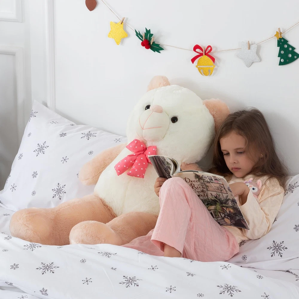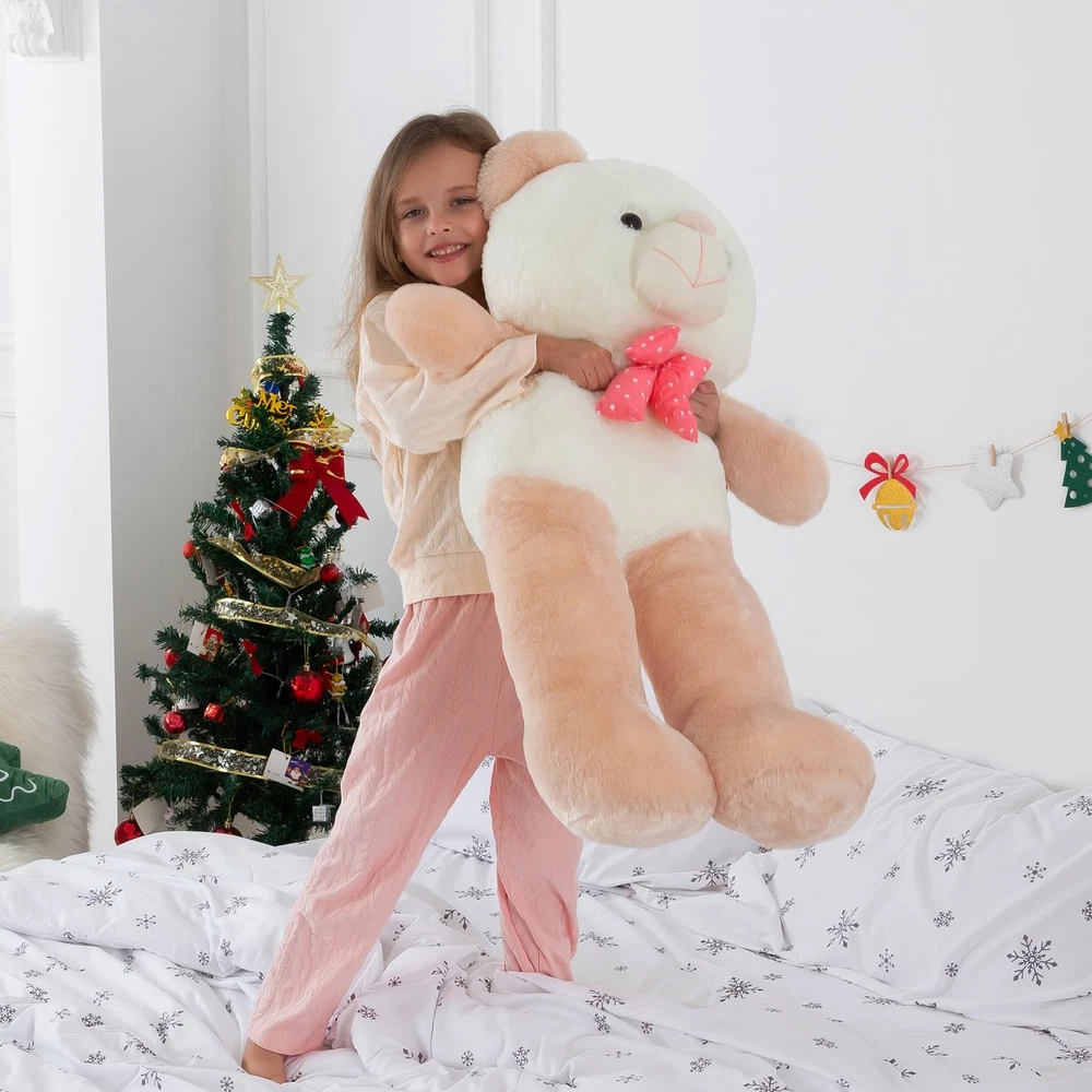 ZGXIONG Giant Teddy Bear Large Stuffed Animals 3 Feet Huge Plushies Big Plush Toy for Girlfriend Kids Birthday Gifts 36 Inch Apricot CPC Certification Material: Giant teddy bear valentines day stuffed animals is made of skin-friendly plush fabric + enough 100% PP cotton. Natural eco-friendly, safe and comfy for children's skin Teddy Bears Design: Large stuffed animals 3 feet big teddy bear plushies modeling: 18 x 12 x 36 inches, the huge body of the large teddy bear is very popular with children Give It Away: Giant stuffed animal large teddy bear for all ages, huge plushies teddy bear can be given to girlfriends, children, women, and friends during birthdays, Halloween, and Christmas holidays Beautiful Decoration: This big stuffed bear, whether in the bedroom, living room or office, is all great big bear stuffed animal decor to make your room even warmer Note: After opening the package, please rub, stretch, pat big plushies, then giant plush toy big stuffed animals will recover full within 2-3 days. Pleated fabrics can be restored better with an iron