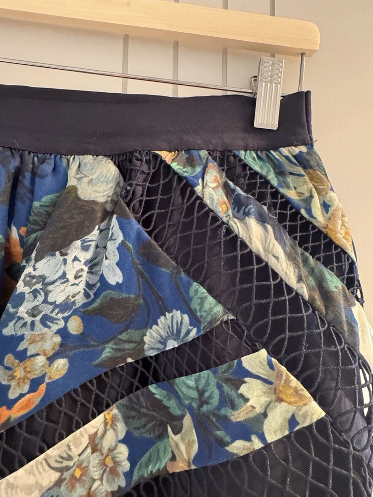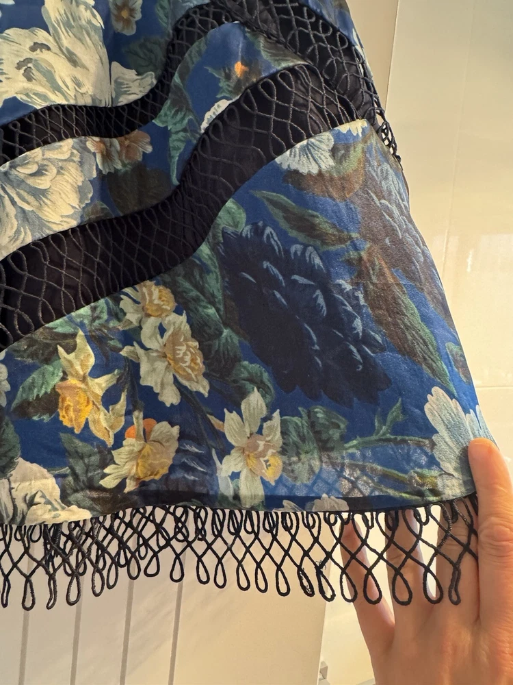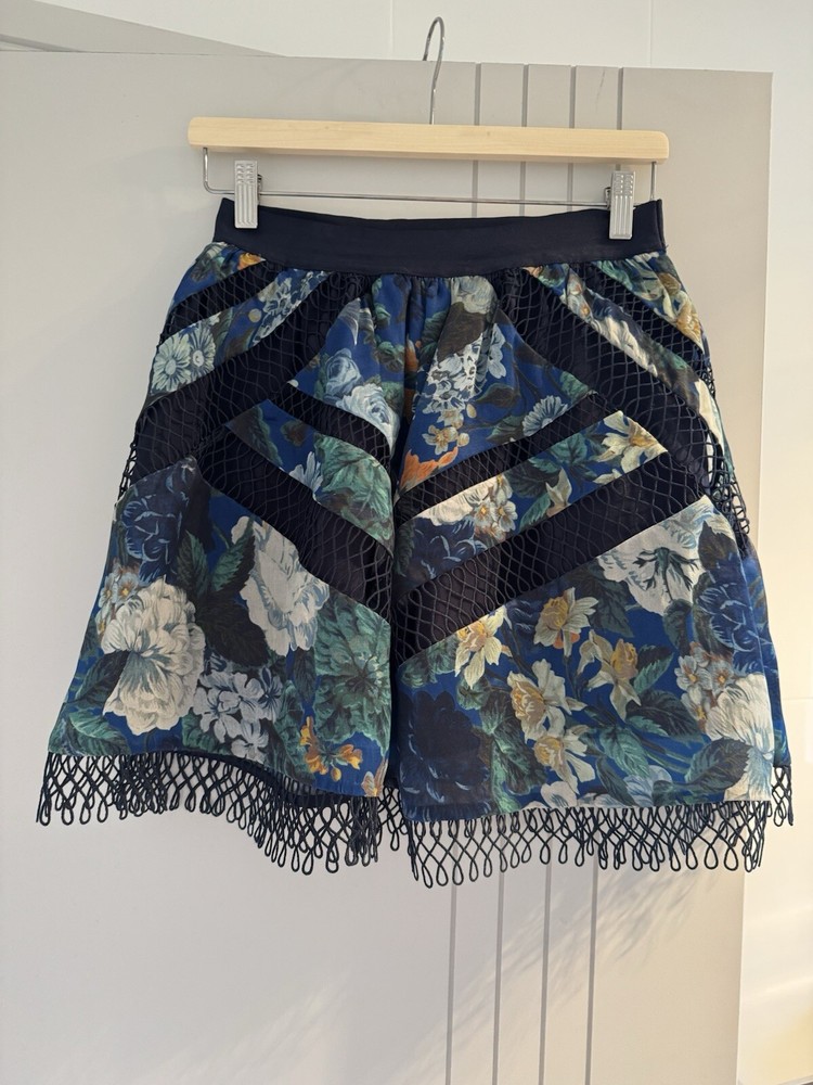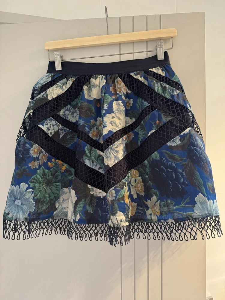 Department:WomenStyle:A-LineType:SkirtCountry of Origin:ChinaPattern:FloralSkirt Length:ShortBrand:ZIMMERMANNSize:6Colour:BlueMaterial:SilkSize Type:Regular