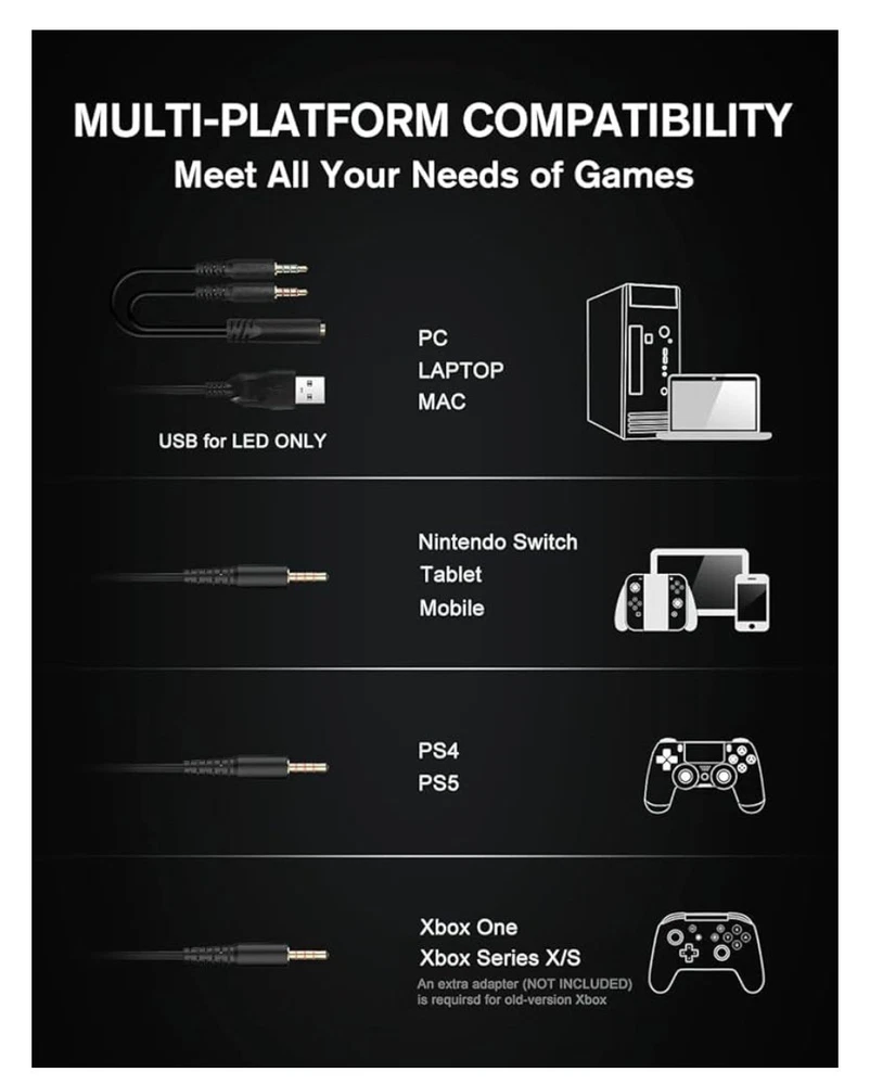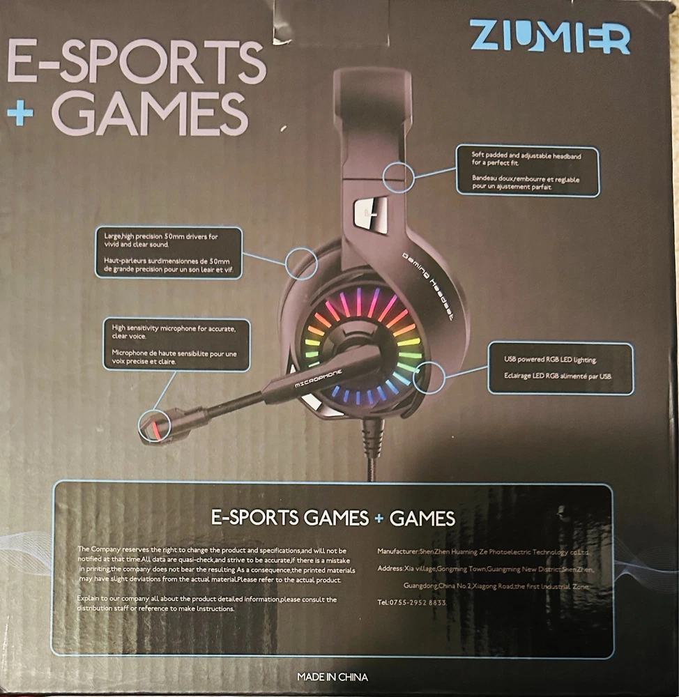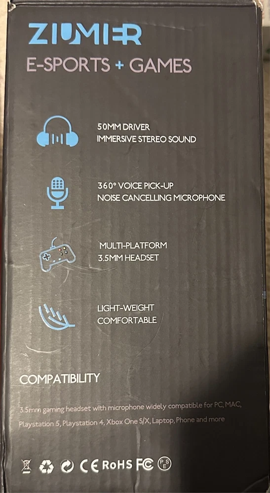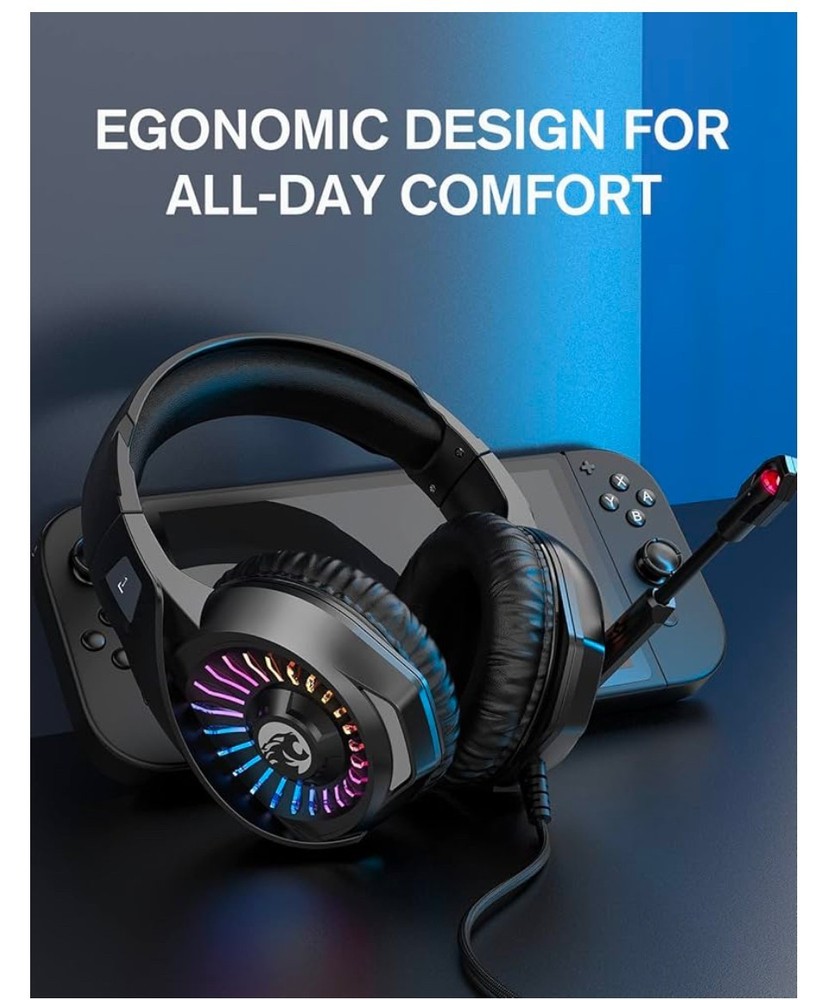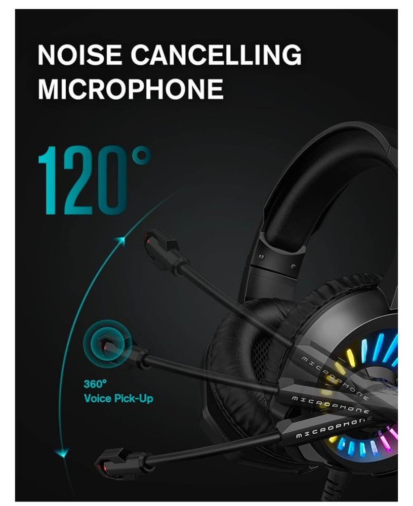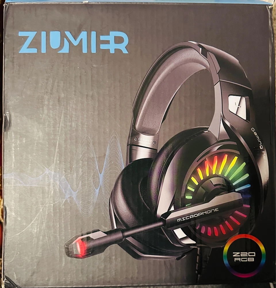 ZIUMIER Gaming Headset with Microphone, Compatible with PS4 PS5 Xbox One PC Laptop, Over-Ear Headphones with LED RGB Light, Noise Canceling Mic, 7.1 Stereo Surround Sound. Note: Box shows light storage wear; item is unused and in excellent condition in its original packaging. Please check out my other listings — I add new items daily. Thank you!
